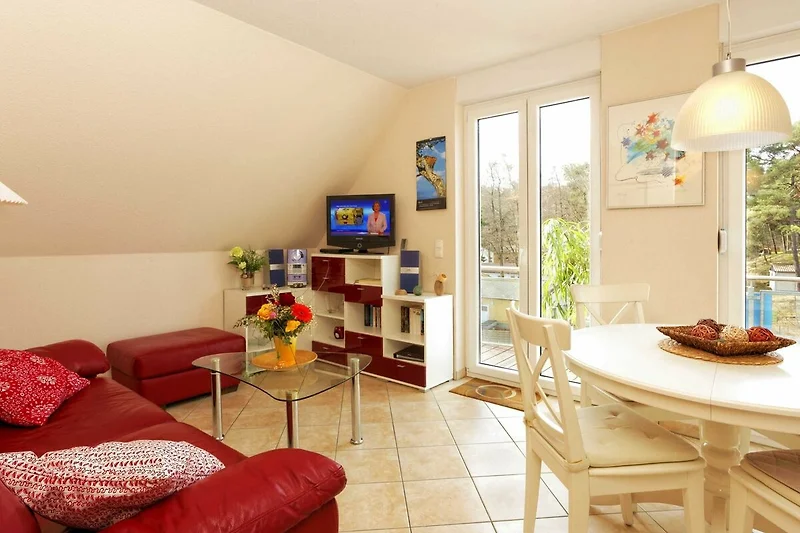 Die Maisonette-Wohnung Südblick befindet sich im OG des Ferienhauses Dünenblick (Baujahr 2007) am Strandvorplatz von Trassenheide, ca. 1 Gehminute vom Strand entfernt.