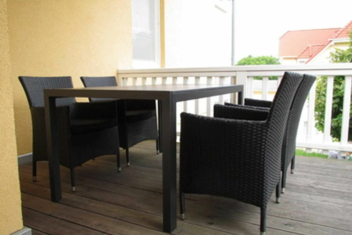Balkon mit grossem Esstisch und 4 Stühlen (Elektrogrill vorhanden)