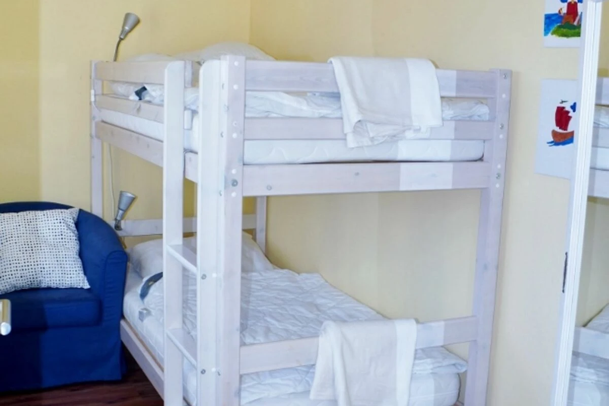 Kinderzimmer mit grossem stabilem Etagenbett (je 90 x 200 cm) und Verdunkelung