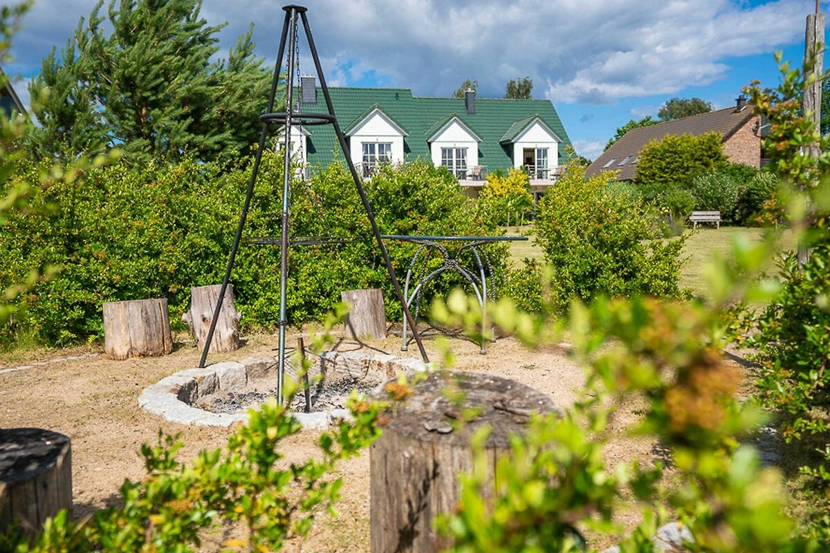 Der grosse Garten bietet Auslauf zum Spielen, Sitzplätze in Pavillons, Grillplätze und eine Feuerstelle für schöne Abende nach einem Tag am weissen, breiten und langen Strand.