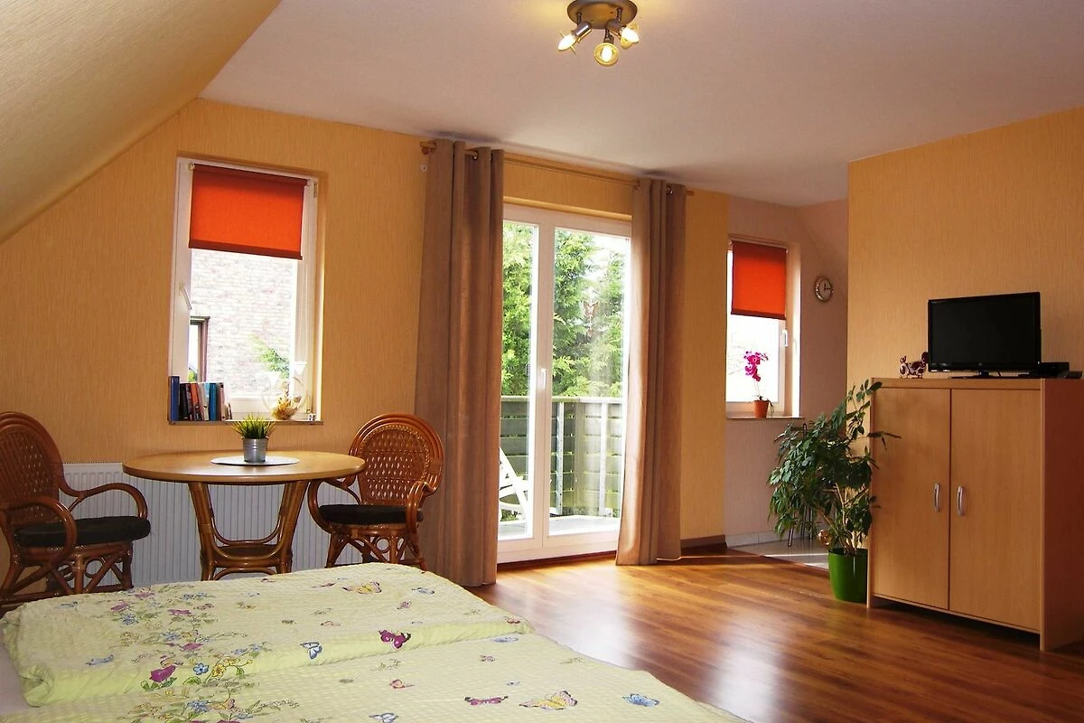 Die beiden 1 Raum-Ferienwohnungen (30m² & 25m²) befinden sich im Obergeschoss des neu gebauten Einfamilienhauses des Vermieters, im Ortsteil Neuhof des Seebades Heringsdorf. Beide Wohnungen verfügen jeweils über eine eigene kleine Pantryküche und ein eigenes Bad mit Dusche und WC. Die Ferienwohnung 1 hat zusätzlich noch einen eigenen möblierten Balkon zur Südwest Seite.