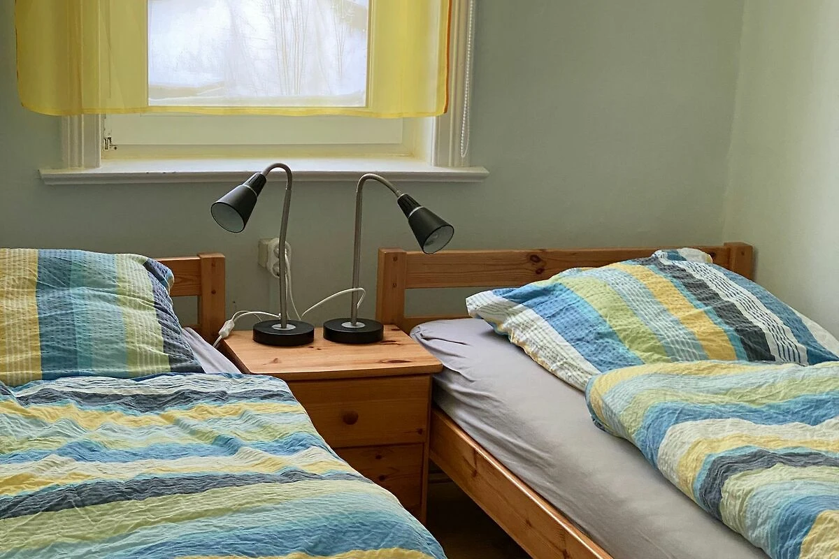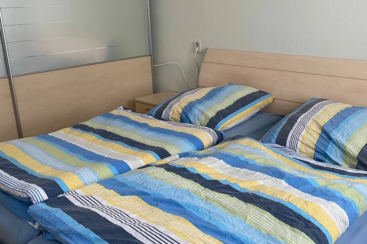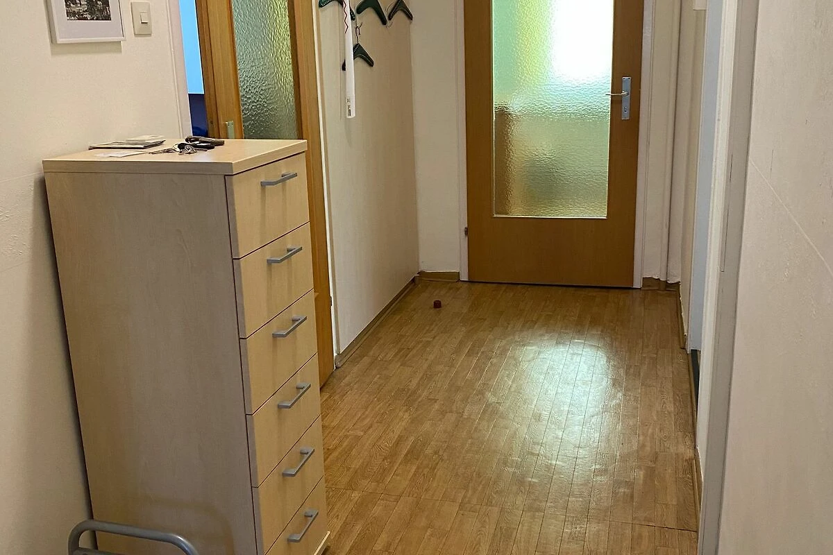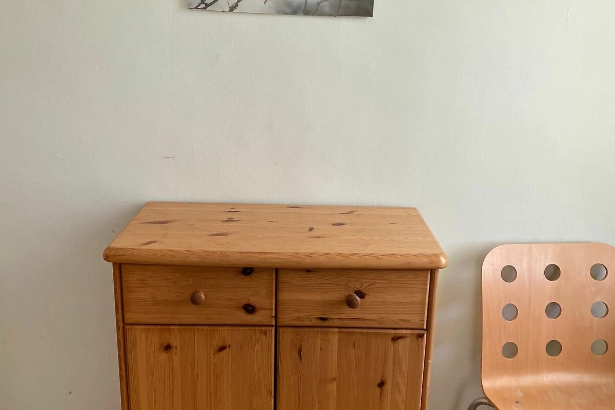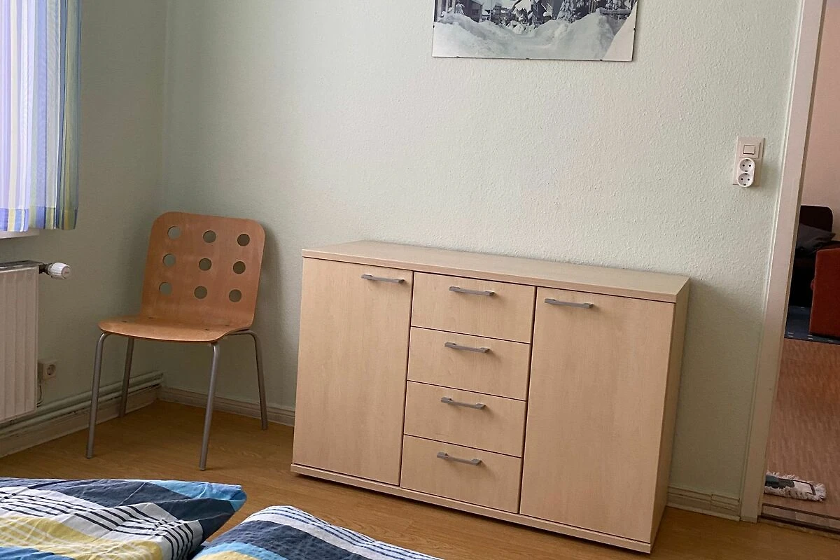 Das kleinere Schlafzimmer verfügt (ca. 11 qm) über zwei Betten, einen Schrank und eine Kommode.