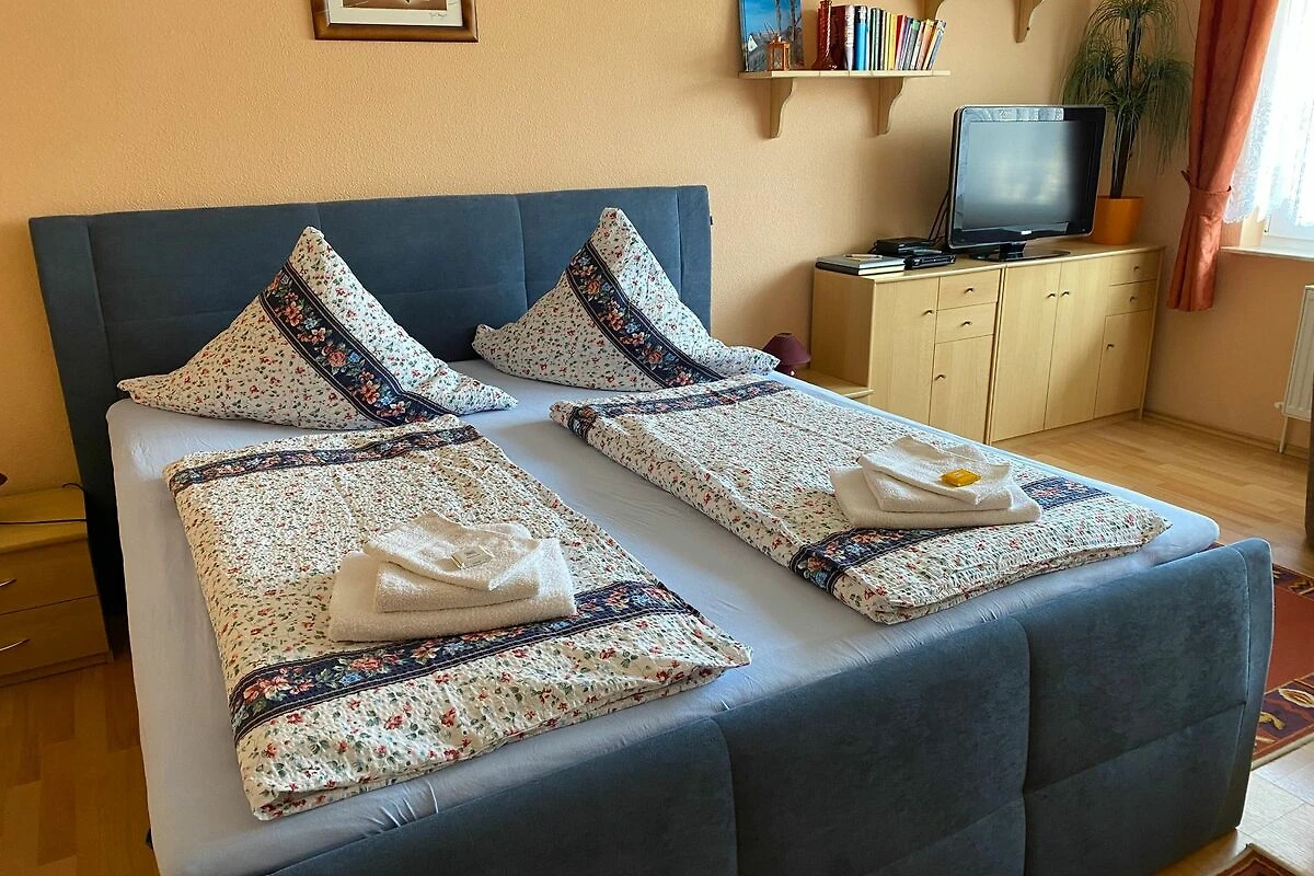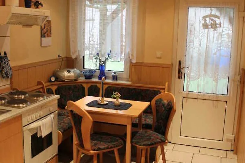 Es ist eine modern eingerichtete Ferienwohnung mit einem kombinierten Wohn- und Schlafraum, einer Einbauküche mit Essecke (Mikrowelle, Gefrierschrank, Kaffeemaschine, Toaster und Wasserkocher vorhanden).