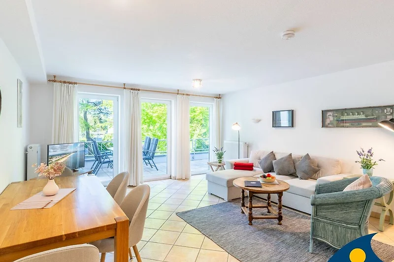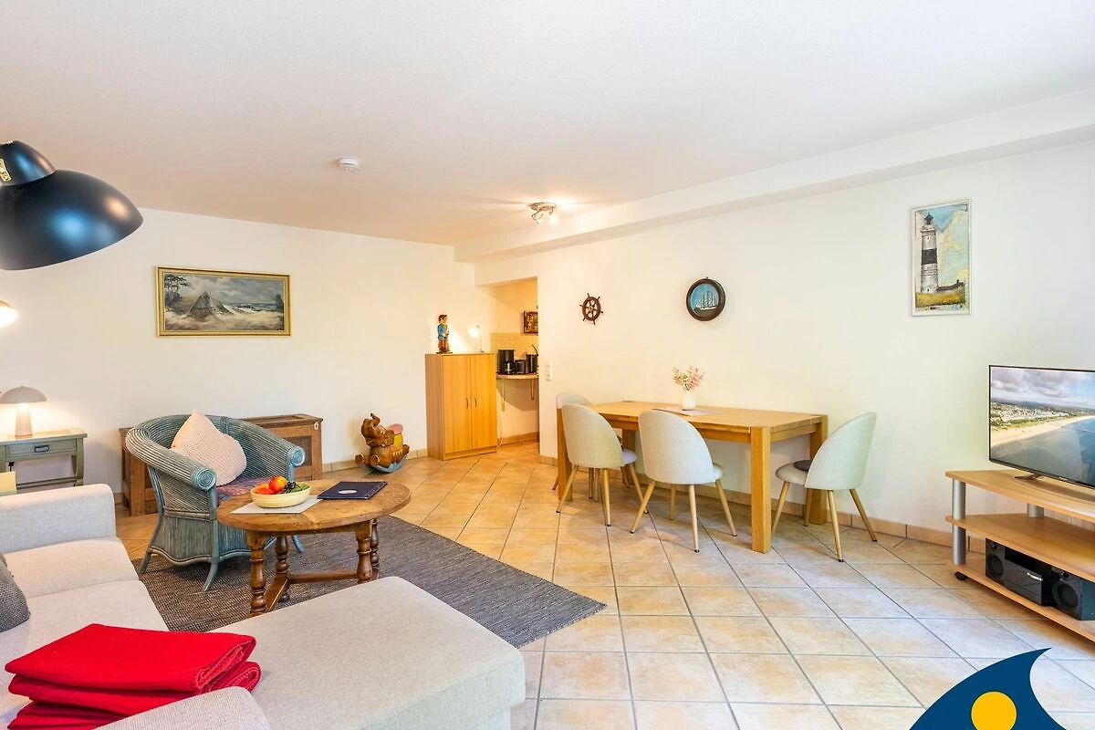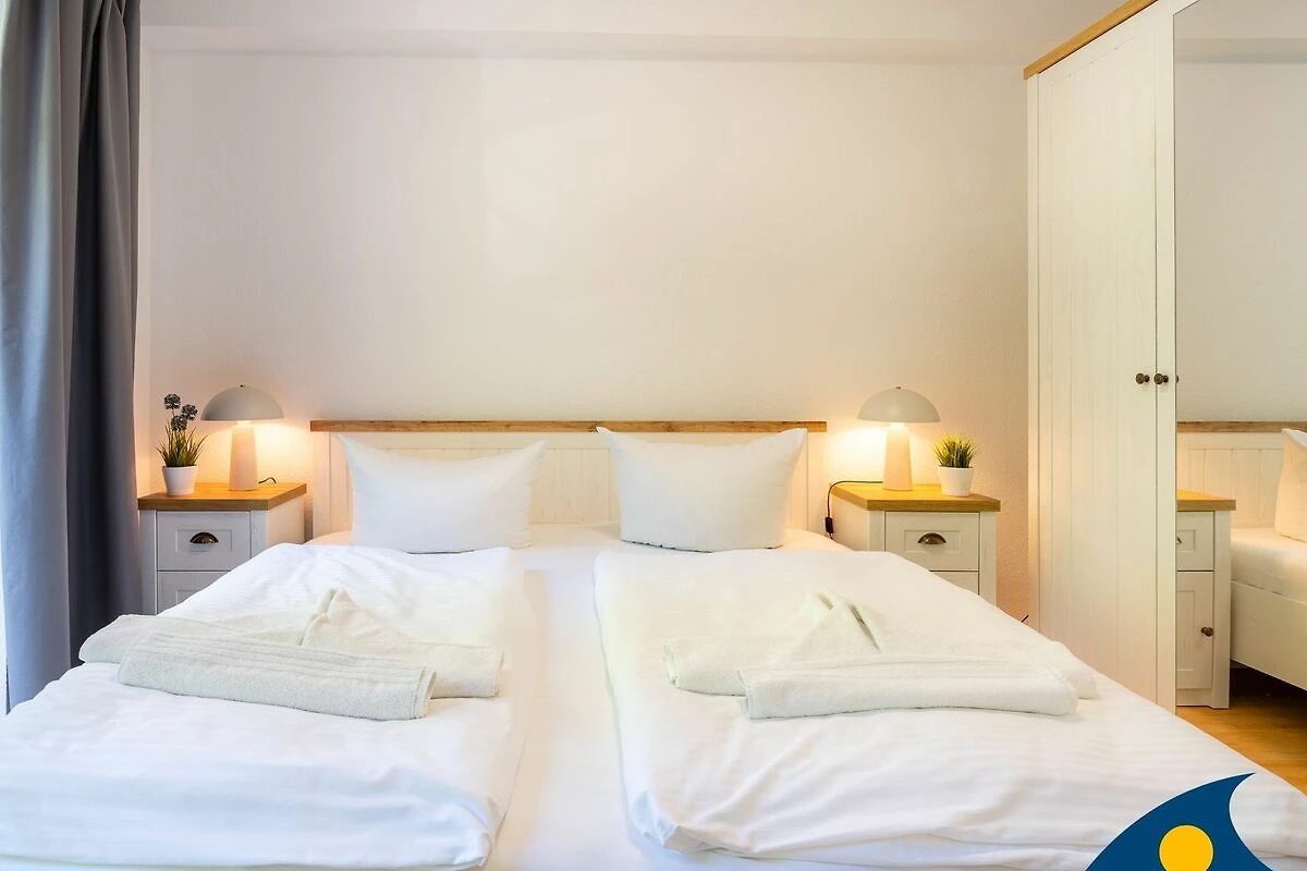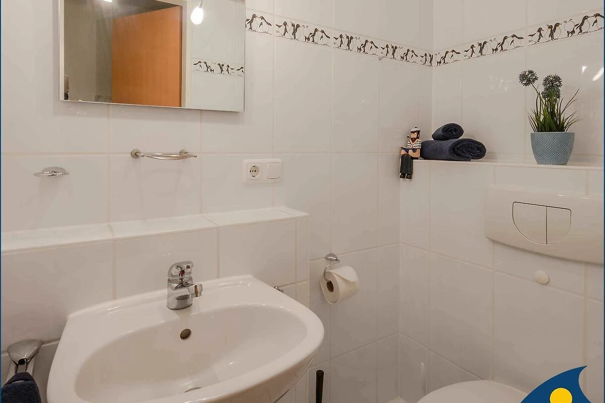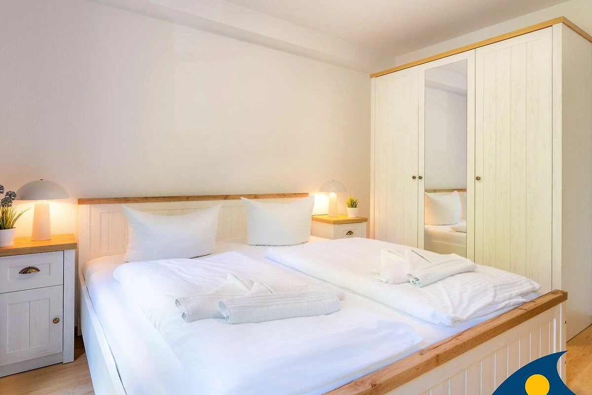Dieses maritim eingerichtete Appartement empfängt Sie mit einem gemütlichen Wohnzimmer, einem Schlafzimmer mit einem bequemen Doppelbett, einem Badezimmer mit WC und Dusche und einer separaten Küche. Durch das Gäste-WC, dem grossen Esstisch under der komfortablen Schlafcouch im Wohnbereich bietet diese schöne Ferienwohnung die besten Voraussetzungen für einen Urlaub mit der Familie oder Freunden (max. 4 Personen). Das Highlight der Wohnung ist der ca. 18 qm grosse Südbalkon. Durch die maritimen Details und den ausgewählten Einrichtungsgegenständen, werden Sie sich in dem Appartement 18 sehr schnell zu Hause fühlen.