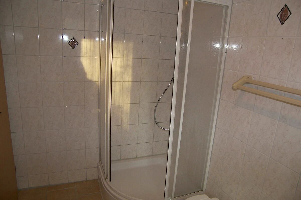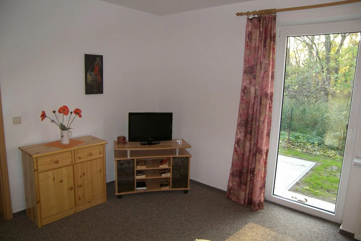 Das Wohnzimmer verfügt über eine Couch-Sitzgruppe, TV und Radio. Vom Wohnzimmer aus gelangt man auf die Terrasse zur Südlage. Das Schlafzimmer ist mit einem Doppelbett (180 x 200) und einem geräumigen Kleiderschrank ausgestattet. Das Bad mit Fenster verfügt über Dusche/WC.