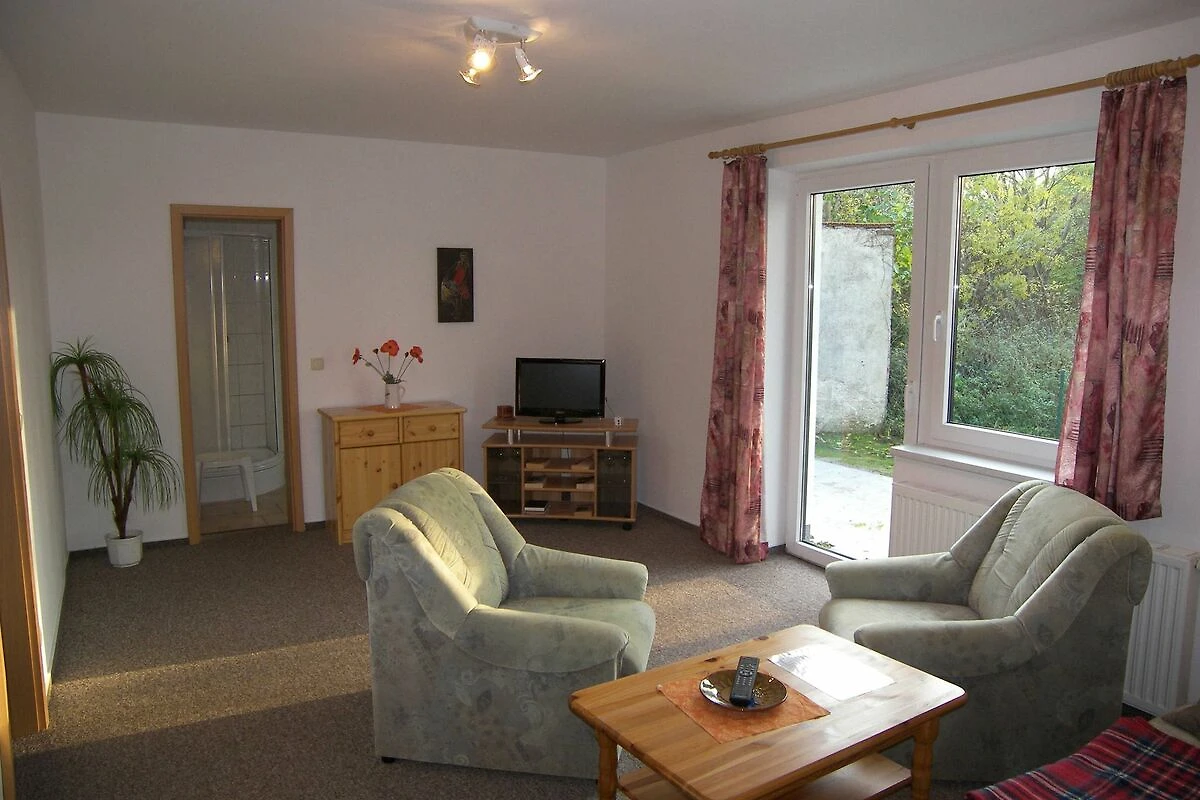 Die gemütliche Ferienwohnung (40 m²) befindet sich im Erdgeschoss links eines Ferienhauses mit insgesamt 3 Ferienwohnungen.