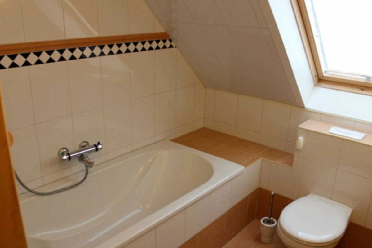 Badezimmer mit Dusche, WC und Badewanne