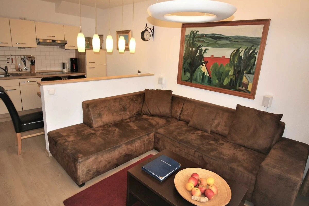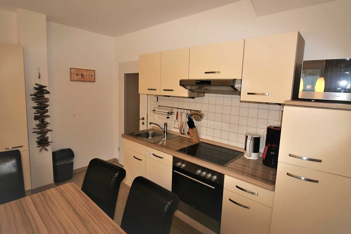 Die Ferienwohnung „Strandläufer“ erstreckt sich über 2 Etagen, ist sehr geräumig und komfortabel eingerichtet. Im 1.OG befindet sich das Wohnzimmer mit Flachbild TV, hochwertigem 5.1. Surroundsystem inkl. DVD Player, CD und Radio, einem schönen Balkon mit Strandkorb sowie 4 Stühlen und Esstisch, ein Bad mit Dusche, WC und Fön. Im 1.OG steht Ihnen ausserdem eine eigene hochwertige Infrarot Wärmesauna im Bad zur Verfügung. Die offene Einbauküche ist mit einem Ceranherd, Backofen, Kühlschrank, Tiefkühlfach, Gläser, Besteck und Geschirr ausgestattet. Und zusätzlich: Mikrowelle mit Grill, Krups Gourmetkaffeemühle, Krups Espressomaschine, Melitta Kaffeemaschine.