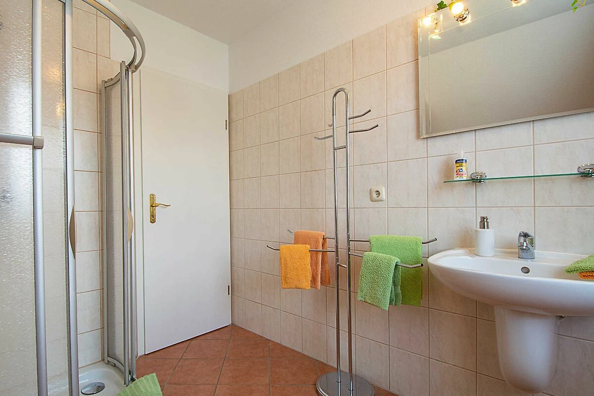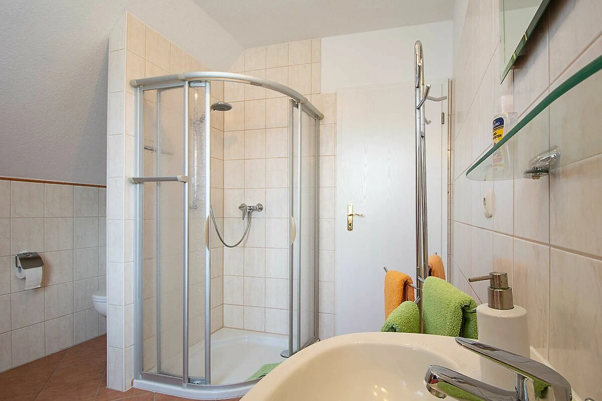 Die komfortablen Ferienwohnung liegt in einer ruhigen Wohnsiedlung im Ortsteil Ost und verfügt über einen PKW-Stellplatz. Ebenfalls befindet sich ein Fahrradabstellmöglichkeit im Carport neben dem Wohnhaus.