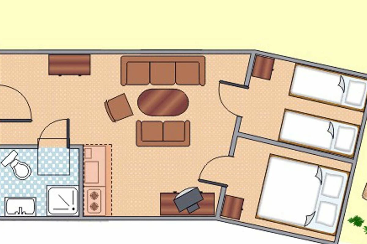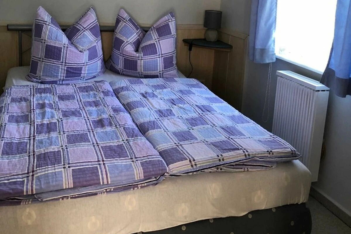 Mit einer Grösse von ca. 40 qm finden Sie hier Platz mit bis zu 4 Personen. Das Ferienhaus ist komplett ausgestattet, im Wohnzimmer mit Sat-TV, gemütlicher Sitzecke, einem Bad mit Dusche und WC, einer Mini-Küche und 2 separaten Schlafzimmern, davon eines mit 1 Doppelbett und das andere mit 2 Einzelbetten. Bettwäsche wird zur Verfügung gestellt, Handtücher müssen selbst mit gebracht werden. Zum Ferienhaus gehört eine eigene Terrasse mit Gartenmöbeln und ein eigener Grillplatz hinter dem Haus. Ebenso ist für die Feriengäste natürlich auch ein eigener PKW-Stellplatz vorhanden. Einkaufsmöglichkeiten befinden sich in ca. 300 m Nähe - Friseur und verschiedene Gaststätten sind ebenfalls in unmittelbarer Nähe vorhanden. Zum Sandstrand der Schaabe sind es von hier aus nur ca. 10 Autominuten - wer nicht mit dem Auto kommt, kann selbstverständlich auch mit dem Bus oder dem Fahrrad fahren.