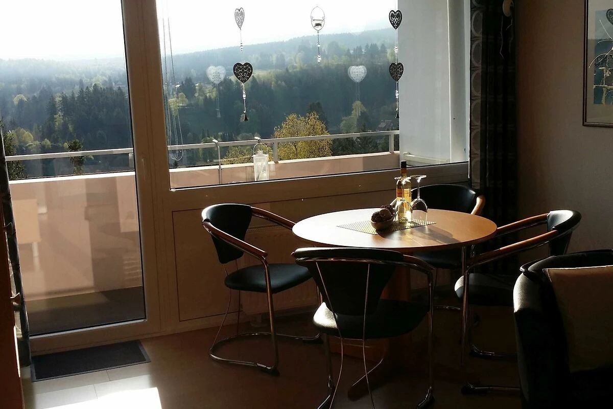 Die mit 3 Sternen klassifizierte Ferienwohnung Eva im Ferienpark Glockenberg in Altenau im Oberharz ist 45 qm gross und unterteilt in einen kombinierten Wohn-Schlafraum mit Essecke, eine für 4 Personen komplett ausgestattete Küche, einem Dusch-Bad sowie ein separates Schlafzimmer. Die Ferienwohnung Eva in Altenau befindet sich im 6. Stock und verfügt über einen Balkon Richtung Osten, mit Blick zum Brocken und Torfhaus. Ein Parkplatz befindet sich direkt vorm Haus. Skibox und Schlitten sind im Keller im Haus vorhanden.