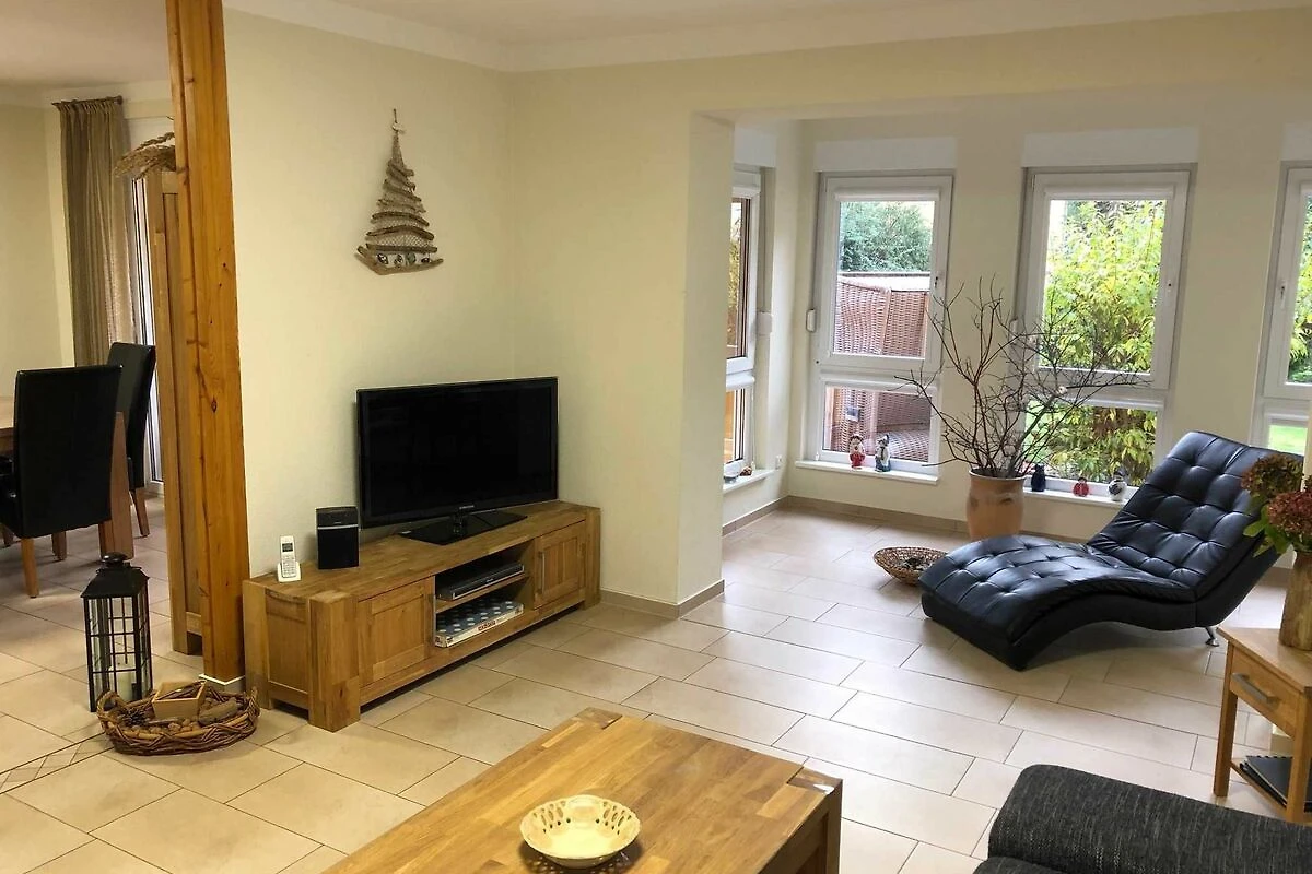 Exklusive Erdgeschosswohnung mit grosser Terrasse, 83m² eigener Garten und PKW Stellplatz. Die Ferienwohnung „Seemalve“ ist hochwertig eingerichtet mit Fussbodenheizung, Wohnraum mit offener Küche, Essbereich und Sofaecke, Leder-Relaxliege, Flach-TV, DVD-Player, Internet Radio mit CD-Player, Festnetztelefon, Terrassenmöbel, Einbauküche mit Ceranherd, Backofen, Kühlschrank, Tiefkühlfach, Gläser, Besteck, Geschirr, Bügeleisen und Bügelbrett.