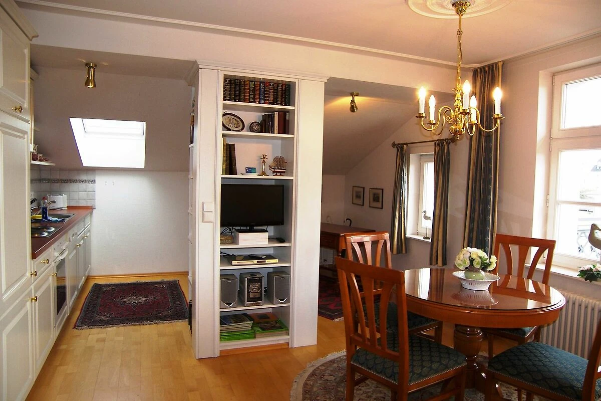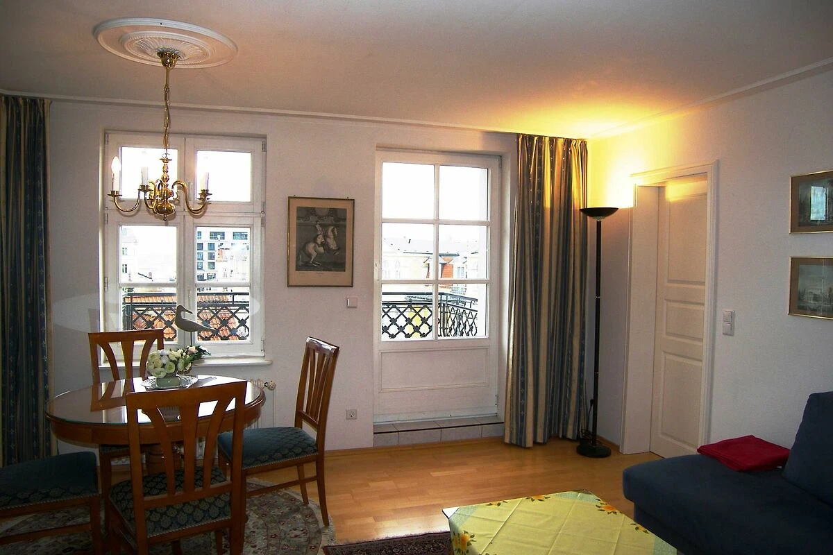 Die Wohnung ist exklusiv mit Stilmöbeln in Kirschbaum und Mahagoni, hochwertigem Bucheparkett, Stuckdecken und Kassettentüren eingerichtet. Der stillvolle Wohn- Essbereich ist mit einer Couch, Flachbild-TV und DVD-Player sowie einer Stereo-Anlage und Esstisch eingericht. Die offene Einbauküche ist mit Backofen, Spülmaschine, Kühlschrank mit Gefrierfach, Kaffeemaschine, Wasserkocher und Toaster ausgestattet. Das erste der beiden Schlafzimmer ist mit einem Doppelbett ausgestattet, das zweite mit zwei Einzelbetten. Im hochwertigen Bad mit Glasdusche müssen sie ausserdem auf Haartrockner und Schminkspiegel nicht verzichten. Die Wohnung besitzt einen sonnigen Balkon mit entsprechenden Möbeln. W-LAN steht Ihnen kostenfrei zur Verfügung.