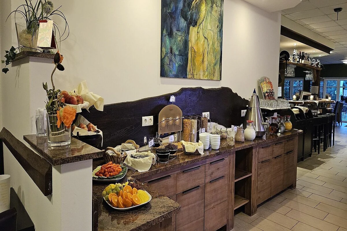 Im Hotel befindet sich unser Restaurant Max und Emmas Laden, unser kleiner, feine Backshop. Hier bieten wir ein umfangreiches Brötchensortiment, Bio-Eier und Zeitungen an.Beliebt bei unseren Gästen ist das vielseitige Frühstücksbuffet.