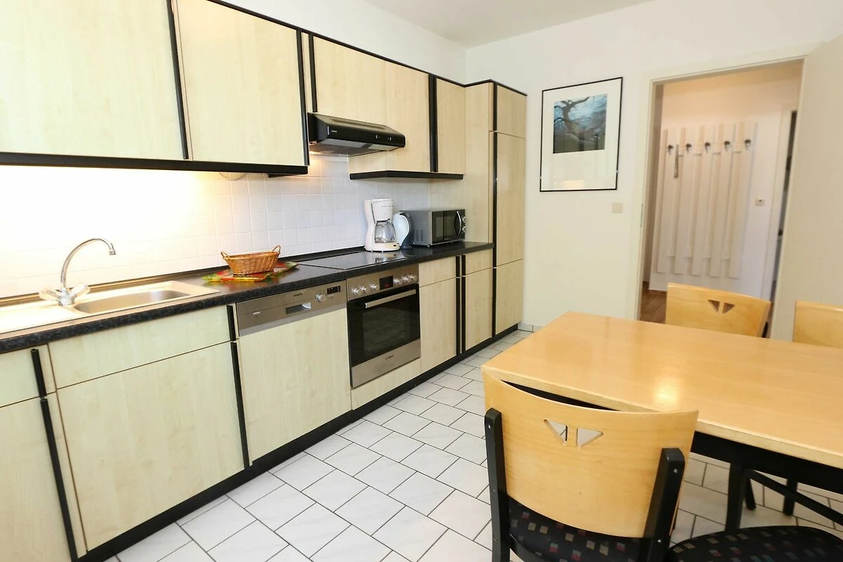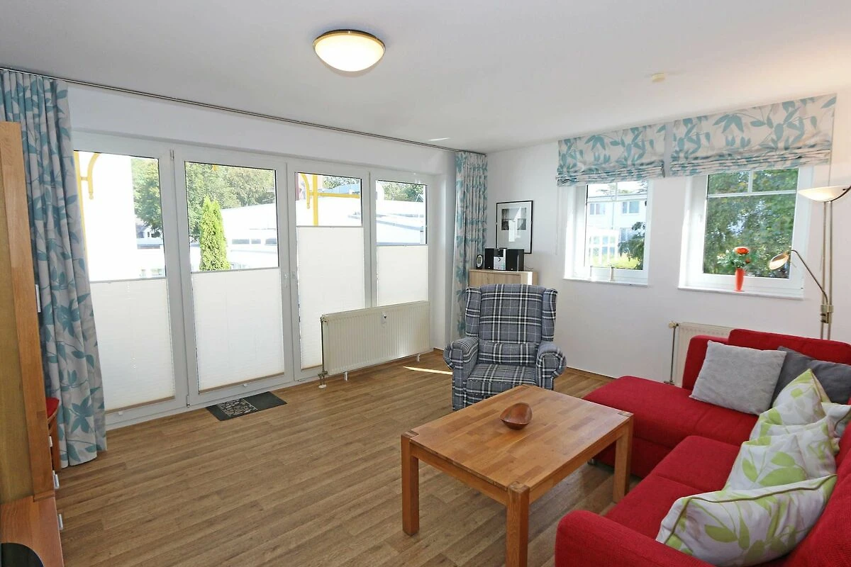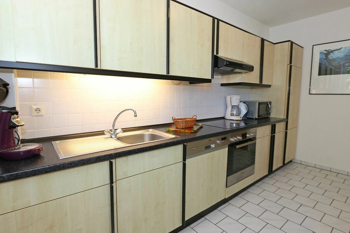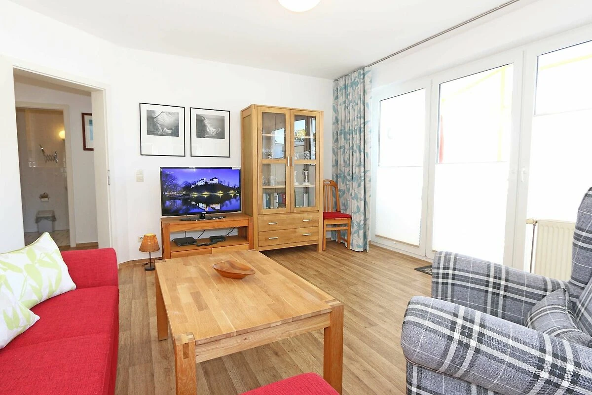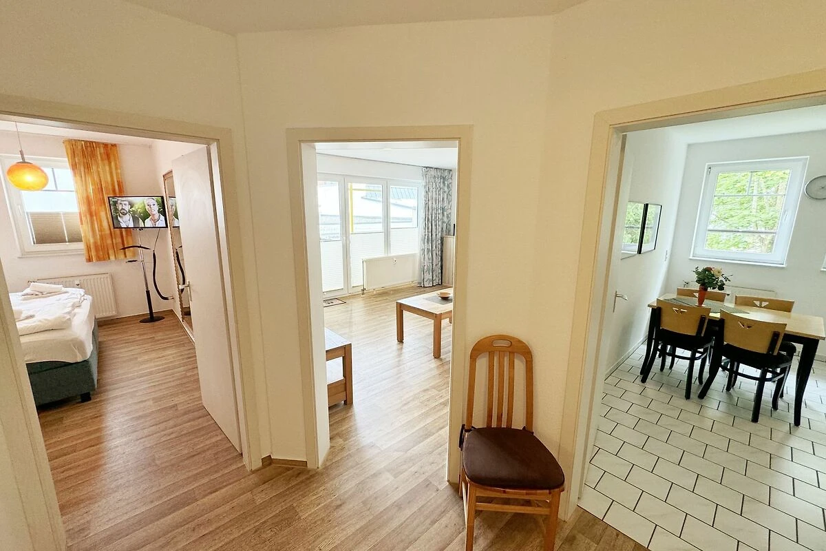 Die Ferienwohnung Nr. 05 (Nichtraucher) ist ca. 60 qm gross und befindet sich im Ostseebad Baabe, in einer ruhigen Seitenstrasse (300m zum Strand). Die Ferienwohnung (1. Etage) besteht aus einem Wohnzimmer mit einer Schlafcouch (2,10m x 2,15m), 2 Sessel, Leselampe, Smart-TV, DVD-Player, Mini-Stereo-Anlage mit DAB-Radio und einem Zugang zum Balkon. Die separate Küche ist komplett ausgestattet und verfügt über 4-Zonen-Ceranfeld, Backofen, Geschirrspüler, Kühlschrank, Kaffeemaschine, Mikrowelle, Senseo Padmaschine, Toaster, Eierkocher und diversen Küchenutensilien. Ein Esstisch und 4 Stühle sind natürlich in der Küche vorhanden. Das Schlafzimmer besteht aus einem Boxspringbett (1,80m x 2,00m), Kleiderschrank, Verdunklungsplissee´s sowie ein TV-Gerät. Das Bad verfügt über eine ebenerdige Dusche, ein WC, ein Kosmetikspiegel und Fön. Ein bestuhlter Balkon in der 1. Etage (Richtung Nord/Ost) lädt zum Verweilen ein. Insektenschutzgitter befinden sich in der Küche sowie im Schlafzimmer. Ein eigener PKW-Stellplatz Nr. 05 sowie ein Fahrradunterstand am Haus oder ein Gemeinschafts-Fahrradkeller sind vorhanden. Auch im Urlaub brauchen Sie in der Wohnung nicht auf einen Internetanschluss (W-LAN/LAN) zu verzichten. Dieser ist für Sie inklusive!!! Auch eine kleine Auswahl an Gesellschaftsspielen sowie Urlaubslektüre steht Ihnen zur Verfügung. Die Waschmaschine und Trockner können im Nachbarhaus separat gegen Gebühr genutzt werden. Haustiere sind in der Wohnung 05 nicht erlaubt! Die Erstausstattung eines Wäschepaketes (komplette Bettwäsche, 1 Duschhandtuch, 1 kleines Handtuch) können Sie bis 14 Tage vor Anreise gegen einen Aufpreis dazu buchen oder durch eigene ergänzen. Ab 2 gebuchten Paketen erhalten Sie einmalig 1 Geschirrhandtuch und 1 Duschvorleger hinzu.