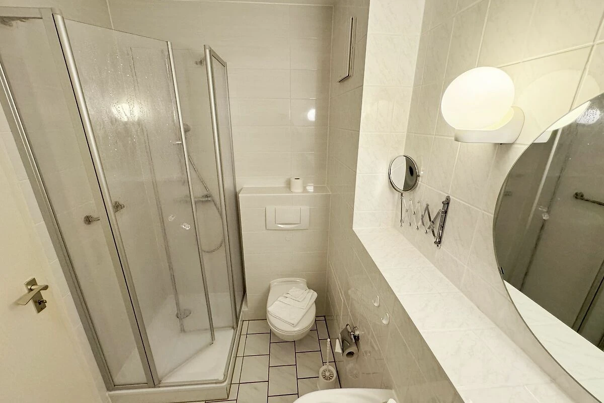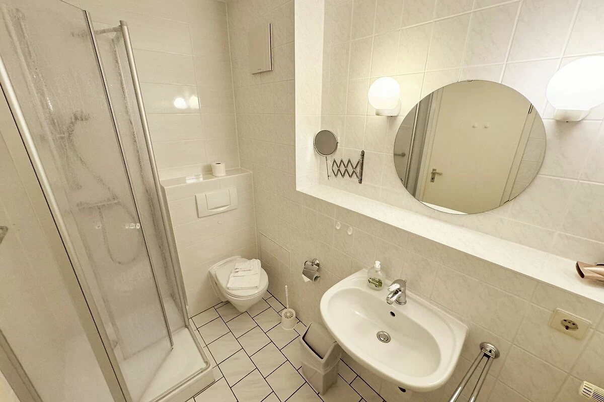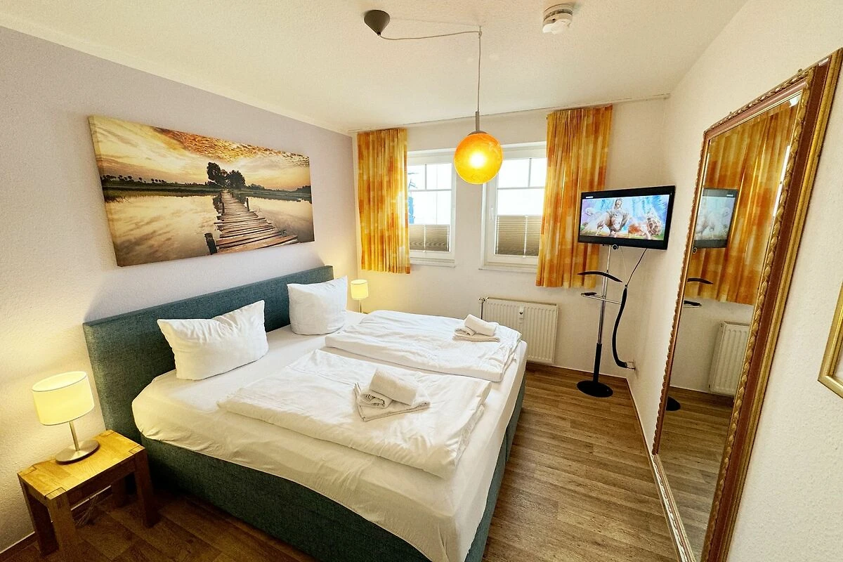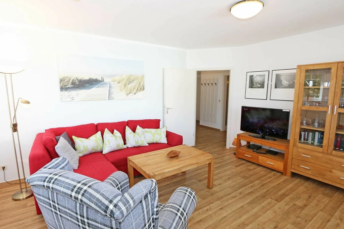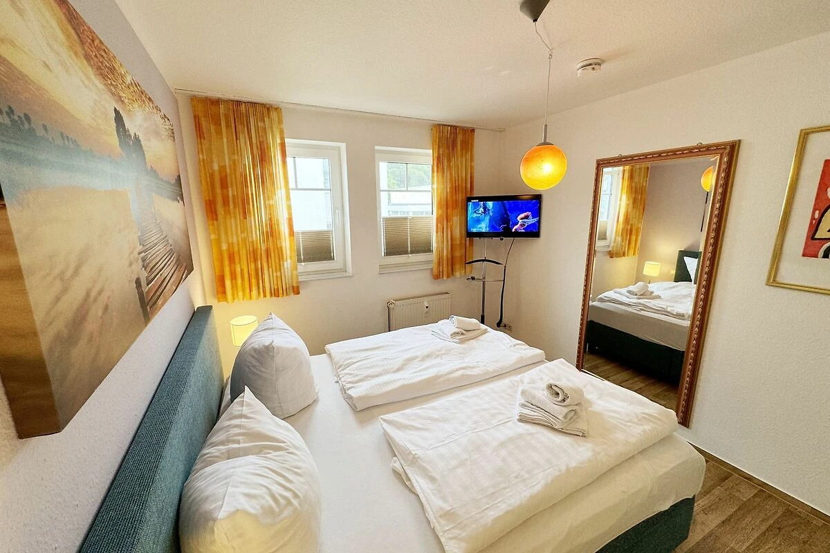 Die Ferienwohnung Nr. 05 (Nichtraucher) ist ca. 60 qm gross und befindet sich im Ostseebad Baabe, in einer ruhigen Seitenstrasse (300m zum Strand). Die Ferienwohnung (1. Etage) besteht aus einem Wohnzimmer mit einer Schlafcouch (2,10m x 2,15m), 2 Sessel, Leselampe, Smart-TV, DVD-Player, Mini-Stereo-Anlage mit DAB-Radio und einem Zugang zum Balkon. Die separate Küche ist komplett ausgestattet und verfügt über 4-Zonen-Ceranfeld, Backofen, Geschirrspüler, Kühlschrank, Kaffeemaschine, Mikrowelle, Senseo Padmaschine, Toaster, Eierkocher und diversen Küchenutensilien. Ein Esstisch und 4 Stühle sind natürlich in der Küche vorhanden. Das Schlafzimmer besteht aus einem Boxspringbett (1,80m x 2,00m), Kleiderschrank, Verdunklungsplissee´s sowie ein TV-Gerät. Das Bad verfügt über eine ebenerdige Dusche, ein WC, ein Kosmetikspiegel und Fön. Ein bestuhlter Balkon in der 1. Etage (Richtung Nord/Ost) lädt zum Verweilen ein. Insektenschutzgitter befinden sich in der Küche sowie im Schlafzimmer. Ein eigener PKW-Stellplatz Nr. 05 sowie ein Fahrradunterstand am Haus oder ein Gemeinschafts-Fahrradkeller sind vorhanden. Auch im Urlaub brauchen Sie in der Wohnung nicht auf einen Internetanschluss (W-LAN/LAN) zu verzichten. Dieser ist für Sie inklusive!!! Auch eine kleine Auswahl an Gesellschaftsspielen sowie Urlaubslektüre steht Ihnen zur Verfügung. Die Waschmaschine und Trockner können im Nachbarhaus separat gegen Gebühr genutzt werden. Haustiere sind in der Wohnung 05 nicht erlaubt! Die Erstausstattung eines Wäschepaketes (komplette Bettwäsche, 1 Duschhandtuch, 1 kleines Handtuch) können Sie bis 14 Tage vor Anreise gegen einen Aufpreis dazu buchen oder durch eigene ergänzen. Ab 2 gebuchten Paketen erhalten Sie einmalig 1 Geschirrhandtuch und 1 Duschvorleger hinzu.