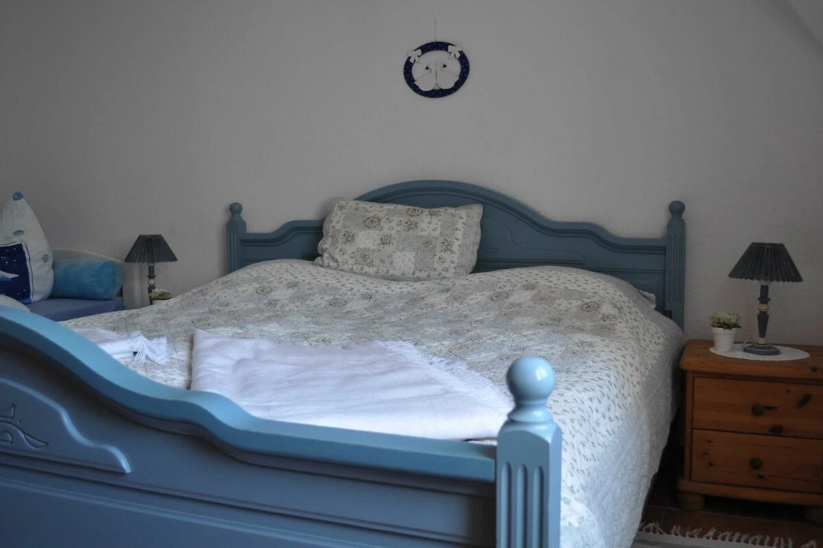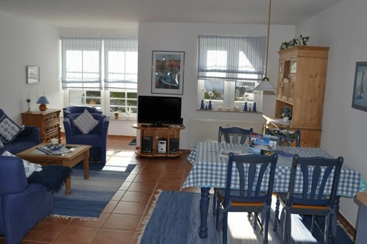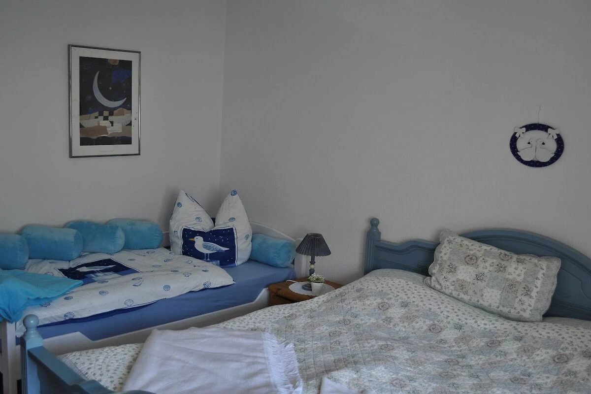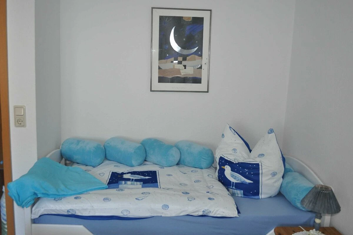 Die 50 Quadratmeter grosse Ferienwohnung Möwennest liegt im ersten Stock mit Süd / West - Balkon. Diese gemütliche, mit Liebe zum Detail eingerichtete Ferienwohnung, bietet Platz für 2 Erwachsene und 1Kind. Einkaufsmöglichkeiten (Edeka, Penny, Bäcker etc.) und Apotheke liegen in unmittelbarer Nähe. PKW Stellplatz (Nr. 9) und abschliessbarer Fahrradunterstand mit Wäschetrockenraum sind vorhanden.