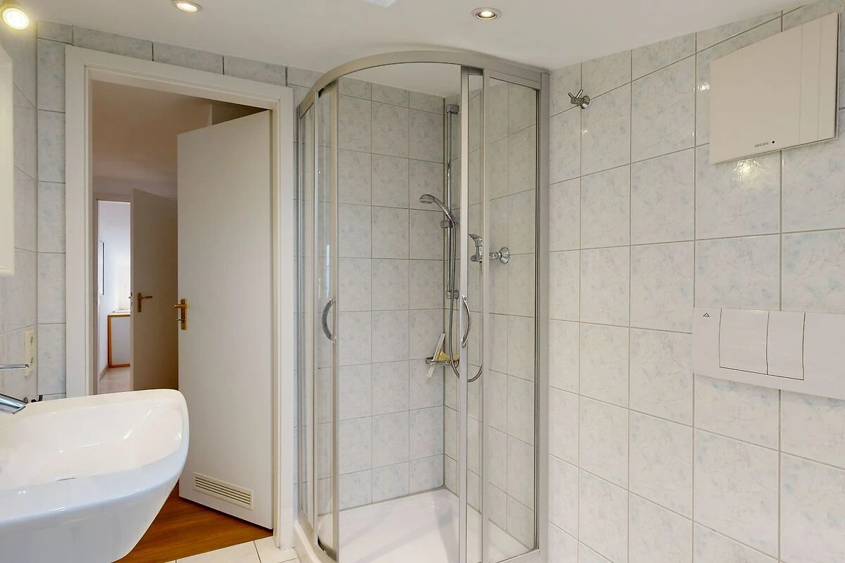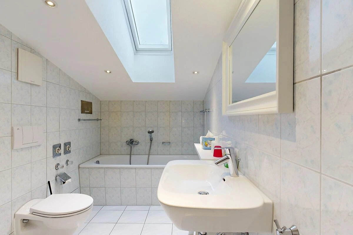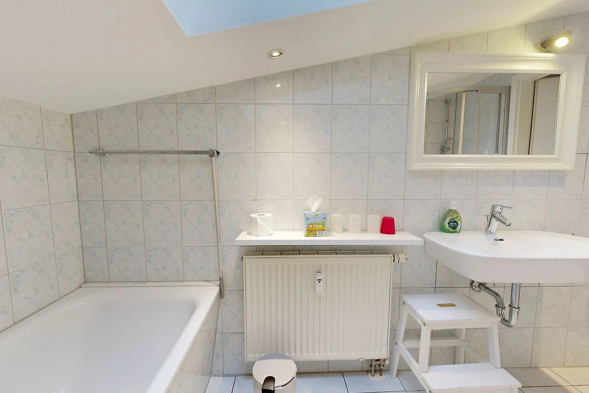 * 1 Badezimmer mit Dusche, Badewanne und WC, Föhn