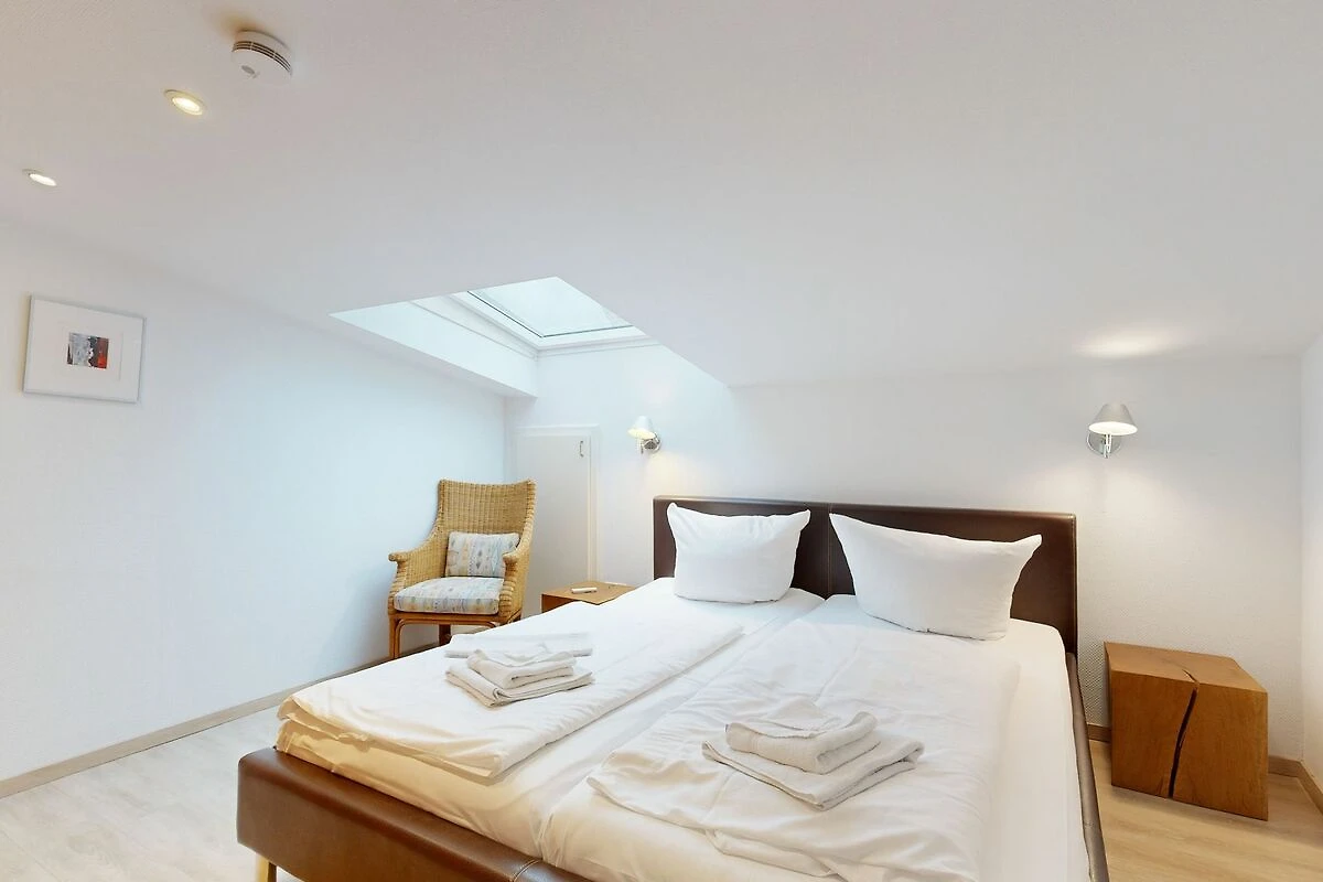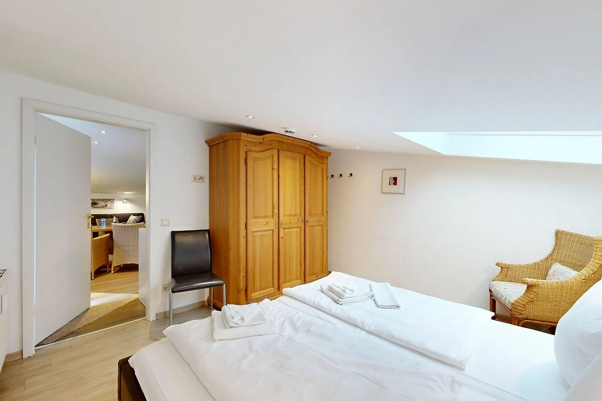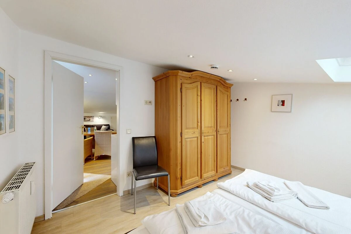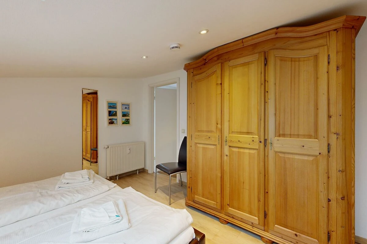 * 1 Schlafzimmer mit einem Doppelbett und grossem Kleiderschrank, Dachschrägen