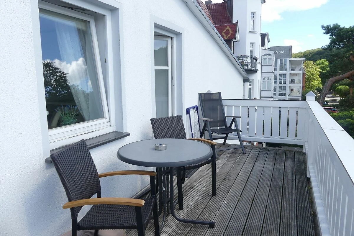 Sehr schöne Ferienwohnung in der 2. Etage (3 Zimmer / 52 m²) direkt an der Strandpromenade mit zwei Schlafzimmern und einem Balkon zur Südseite mit Balkonmöbeln und Sonnenschirm