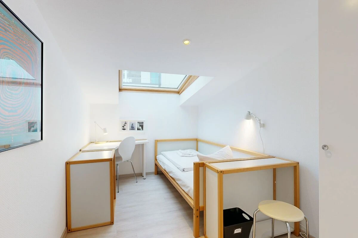 * 1 Schlafzimmer mit 1 Einzelbett, Schrank, Dachschrägen