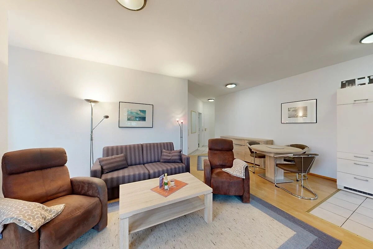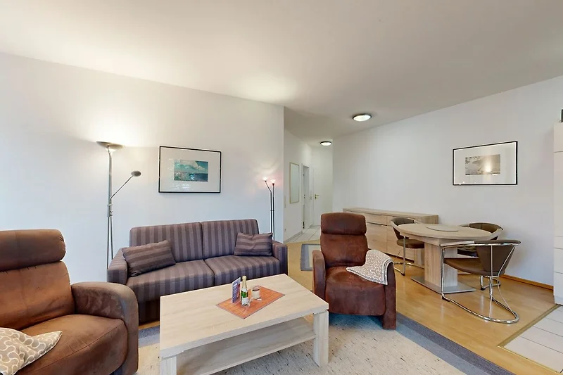 * Wohnzimmer: Couchgarnitur (Schlafgelegenheit für 2 Personen), Kabel-TV, Radio mit CD, Essplatz, W-LAN-Internetanschluss