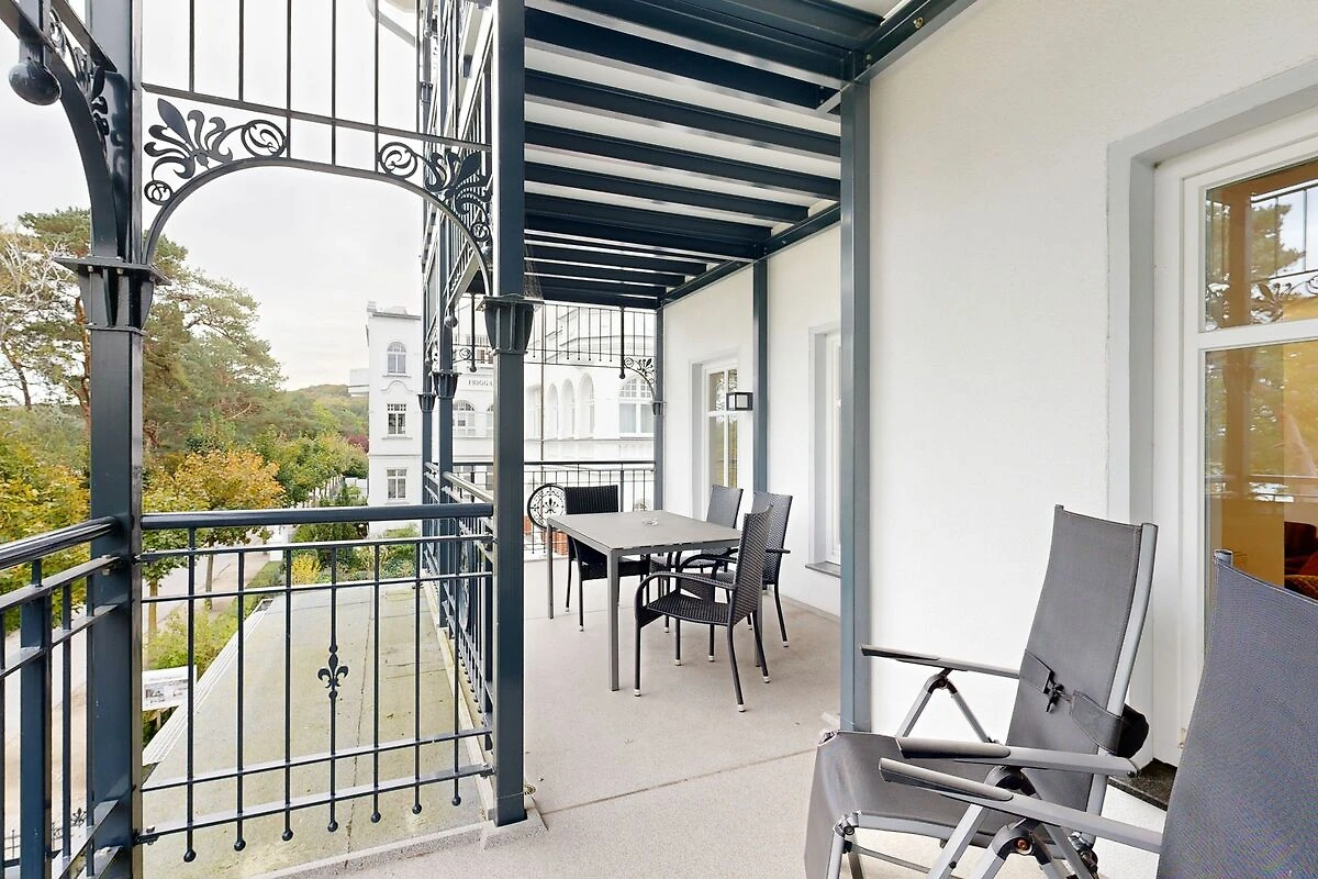Die Komfort-Ferienwohnung befindet sich in der Villa Strandblick in der 1. Etage (2 Zimmer / 55 m²) mit 1 Schlafzimmer und einem Balkon mit fantastischem Ostseeblick