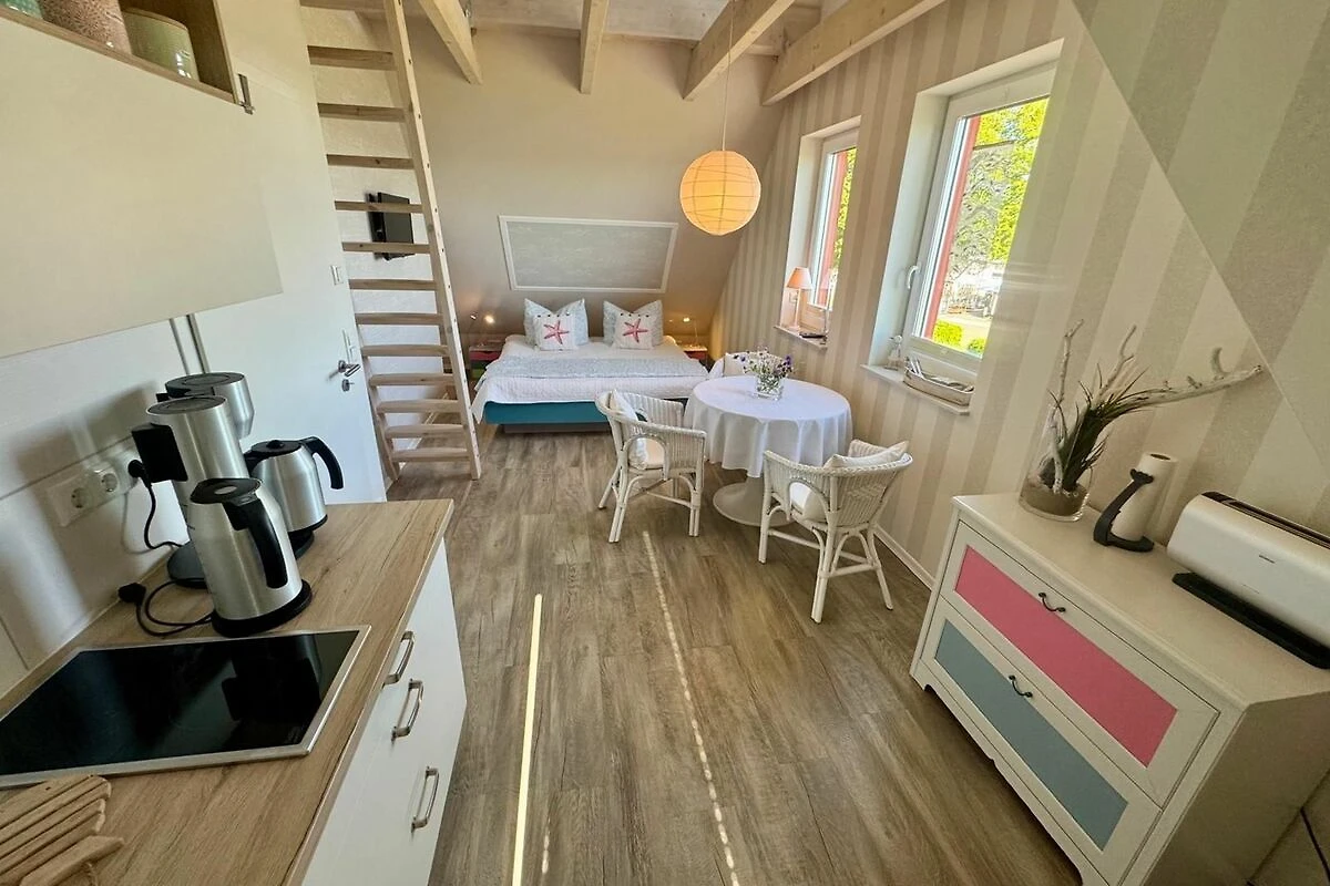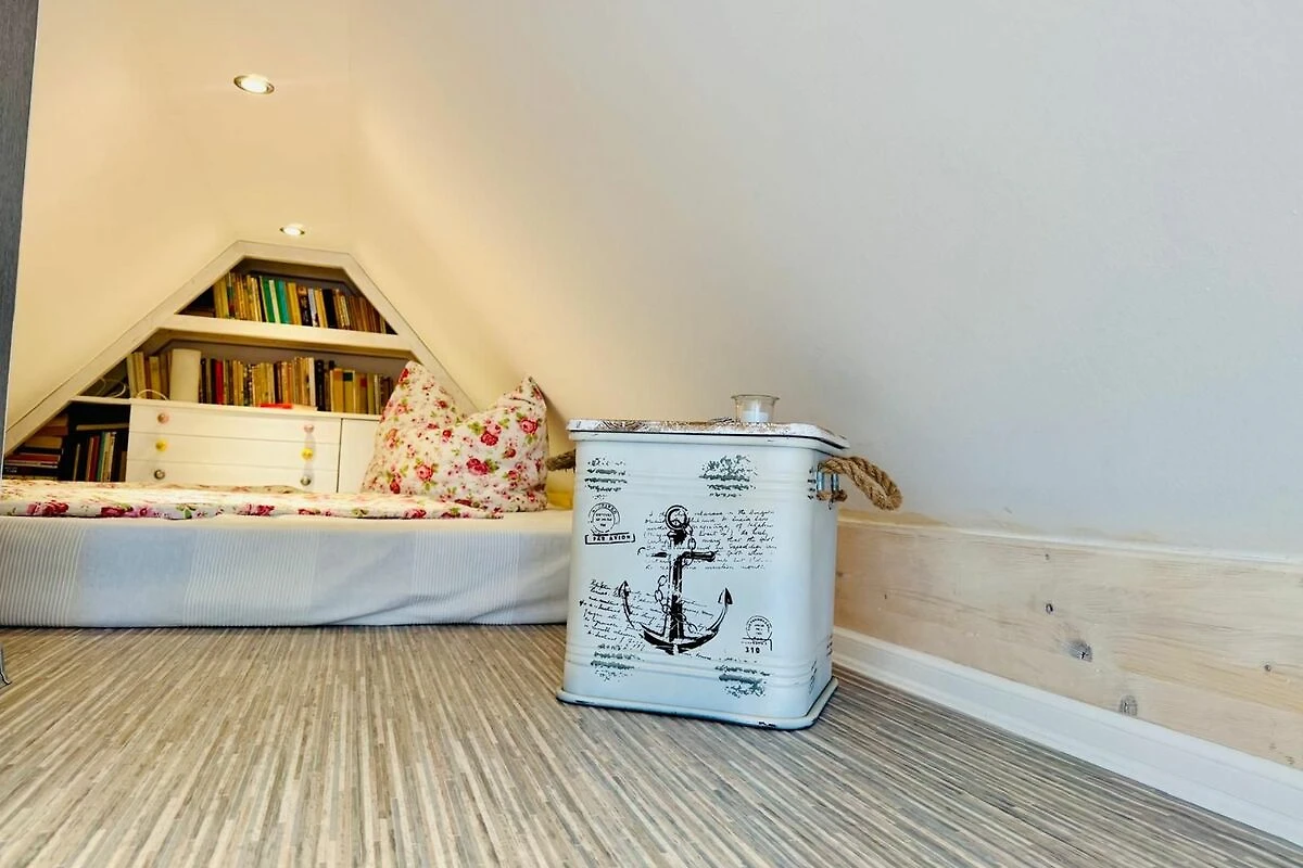 Das neu erbaute und modern eingerichtete Feriendomizil befindet sich im Dachgeschoss des Hauses und ist über eine Treppe zu erreichen. Im unteren Bereich wohnt der Vermieter. Der idyllische Empfangsbereich im Erdgeschoss, lädt zum Verweilen und lesen ein.