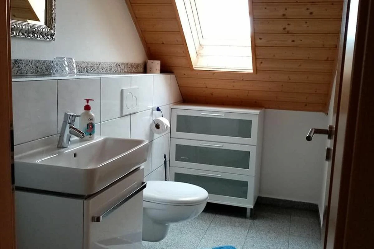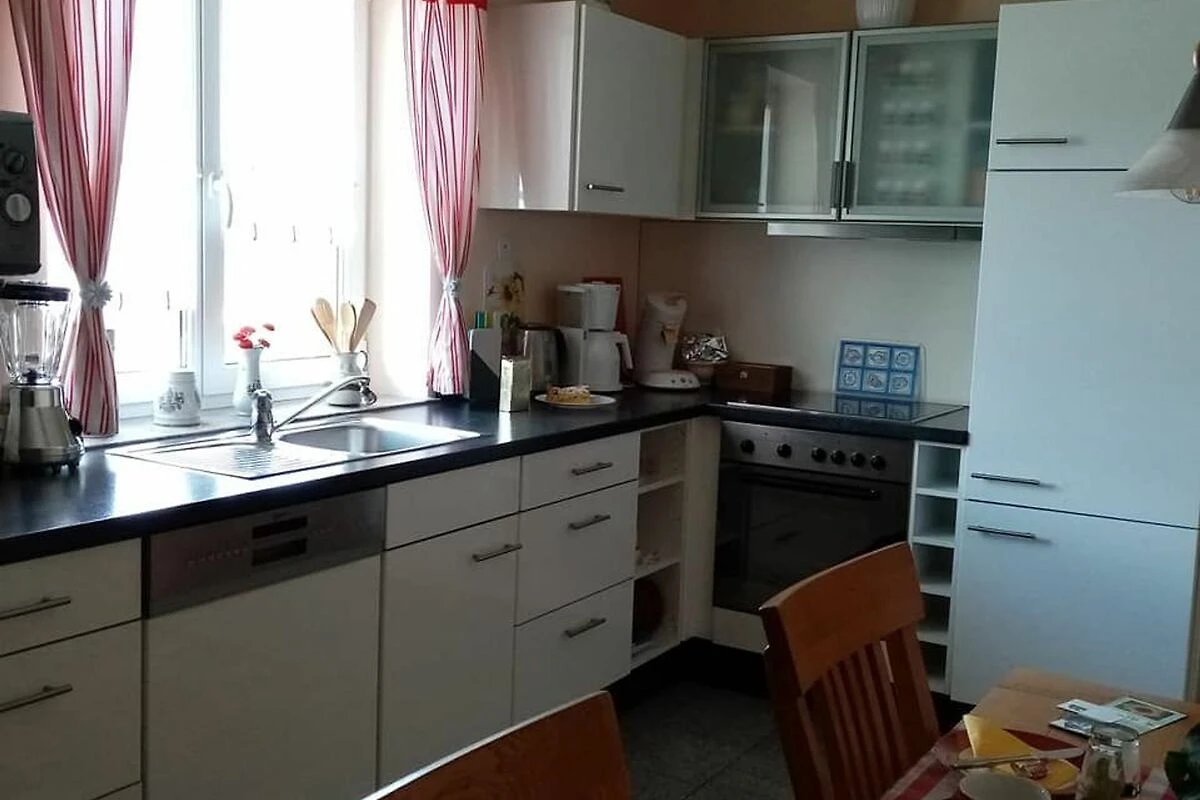 Eine 95 qm grosse Wohnung ist Ihr Zuhause für Ihre Ferientag bei uns. Sie finden genug Platz für 1 bis 5 Personen. 2 Schlafzimmer, ein gemütliches Wohnzimmer mit Ledercouch und Kaminofen -Holz inklusive. Wohn-Essküche voll ausgestattet. Ein grosses Bad mit Badewanne und extra Dusche. Extra Gäste WC mit Waschbecken.