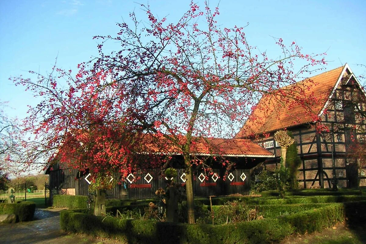 Unseren historischen Spieker haben wir zu zwei schnuckeligen Ferienwohnungen umgebaut. Diese im Oktober 2013 fertig gestellten Wohnungen befinden sich in der 1 bzw. 2. Etage des Fachwerkgebäudes, von wo man eine wunderschöne Ausicht über den Golfplatz in die Natur hat. Hier, direkt am Bentheimer Wald, sieht man auch schon Hirsche und Rehwild durch die Felder ziehen. Für den Gast der Spass an Naturbeobachtung hat, haben wir einen Hochsitz aufgebaut. Jede Wohnung hat eine eigene ebenerdige Terrasse, die zu ungestörter Ruhe im Grünen einlädt. Der Spieker liegt auf dem grosszügigen Parkgrundstück des Hotels. So können Sie die Annehmlichkeiten einer Ferienwohnung geniessen, verbunden mit dem Komfort des Hotels. Sie können Ihre Frühstückbrötchen bei uns bestellen und natürlich auch bei uns vom Buffet frühstücken. Auf der Sonnenterrasse oder im Restaurant können Sie sich unseren selbstgebacken Kuchen schmecken lassen und falls der 'eigene Herd' ruhen soll, können Sie sich von unserem Koch mit seiner frischen saisonalen Küche verwöhnen lassen. Direkt, wenn Sie den Hof verlassen, sind Sie auf der 'Dinkelfahrradroute' die auch in die nahe gelegenen Niederlande führt. Fahrradrouten können Sie bei uns ausleihen und auch Fahrräder können gemietet werden. Der Bentheimer Wald lädt zu ausgiebigen Wandertouren ein. Gerne können Sie unseren 9-Loch-Hotelgolfplatz bespielen oder sich im Sportraum fit halten. Im Saunabereich oder unter dem Solarium können Sie entspannen. Weiter besteht die Möglichkeit, Massagen bei einem erfahrenen Therapeuten zu buchen. Alles in allem, eine Menge Möglichkeiten sich zu entspannen und zu erholen.