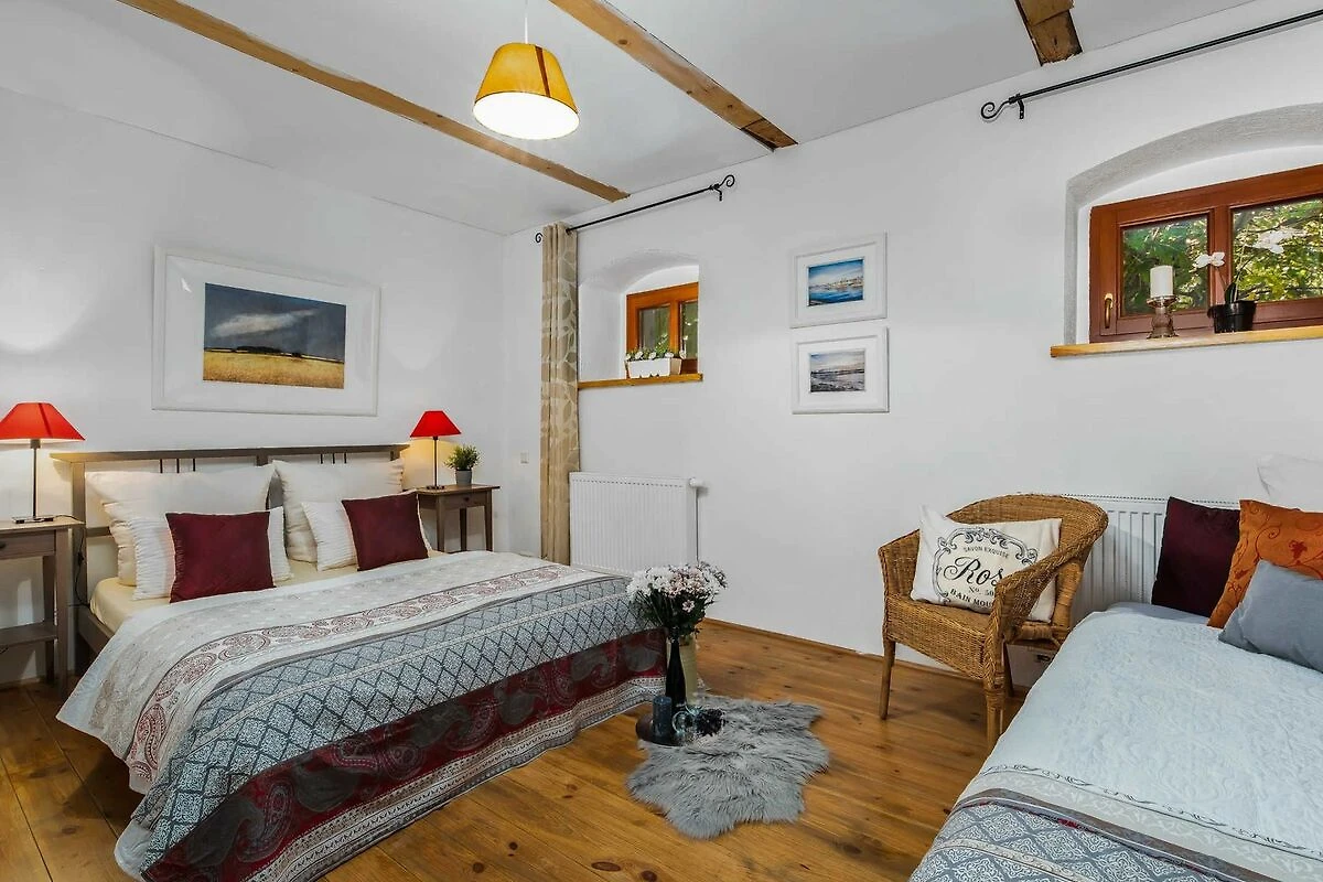 Auf unserem historischen, alten Bauernhof bieten wir Ihnen ein liebevoll restauriertes Ferienhaus für 10 bis 12 Personen an. Sechs Doppelschlafzimmer mit viel Flair und Liebe zum Detail verteilen sich auf 210 m². Im Erdgeschoss befinden sich eine voll ausgestattete Küche und ein Esszimmer für 12 Personen. Das Wohnzimmer verfügt über einen Kamin für romantische Stunden. Drei WCs und zwei grosszügige Bäder stehen unseren Gästen zur Verfügung, im Erdgeschoss mit Badewanne, Dusche, Doppelwaschtischen, im Obergeschoss mit Dusche und Doppelwaschtisch. Ausreichend Handtücher und Duschtücher liegen für Sie bereit. Ein komplett umzäunter Garten mit Terrasse lädt ein zum Relaxen oder Grillen. Die Sonnenterrasse ist mit gemütlichen Holzmöbeln und Sonnenschirmen für zwölf Personen möbliert. Das Haus Luise befindet sich zusammen mit Haus Clara auf einem Grundstück. Im Haus ist kostenfreier WLAN-Zugang, Kabel-TV.