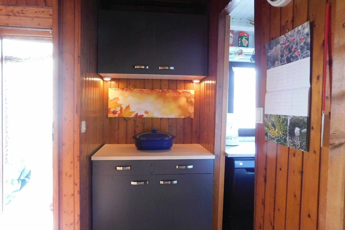 Unser uriges rauchfreies Holzferienhaus befindet sich auf dem Gelände auf einer Anhöhe unseres Campingplatzes direkt am Waldrand. Die Zufahrt zum Haus ist nur über eine Schotterpiste (Waldweg) und durch den Campingplatz möglich. Unser Holzhaus ist aufgeteilt in 1 Schlafzimmer mit Doppelbett, 1 Schlafzimmer mit 2 Einzelbetten, Bad, Dusche und WC; Kochnische und ein Wohn-Esszimmer für 4 Personen. Unser kleiner Wintergarten lädt zum verweilen ein. Vor dem Haus befindet sich eine Sitzgruppe mit Grill. Direkt nebenan befindet sich ein Rasenstück mit Feuerstelle die zu geselligen Stunden einlädt.