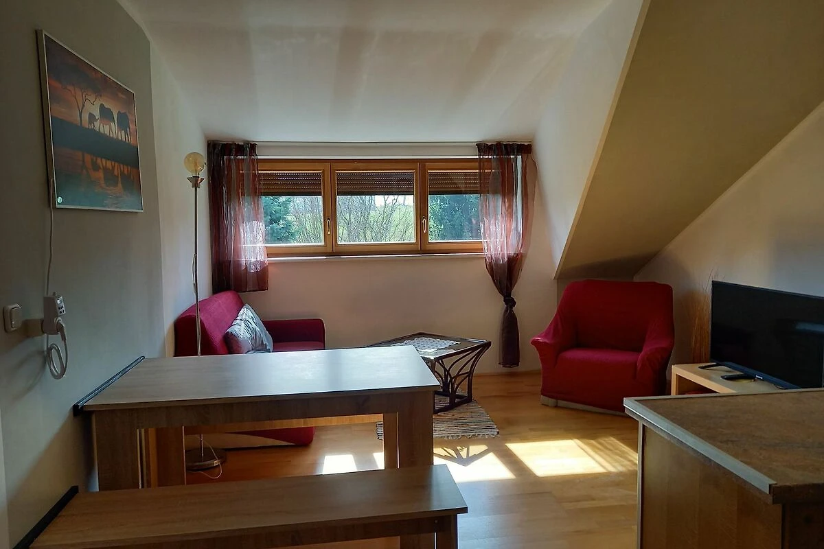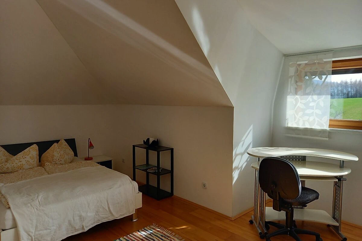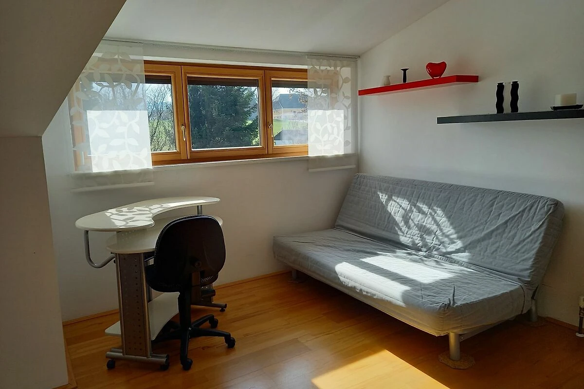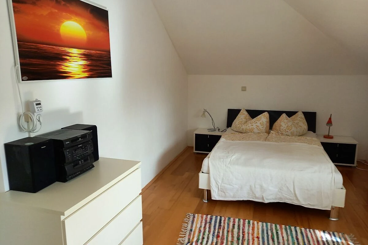 Etagenwohnung (abgeschlossener Wohnbereich, 2 -5 Personen, ideal für Kinder) bestehen aus: Vorraum ca. 8,5 m² Wohnküche ca. 23 m² Schlafraum ca. 25,5 m² Sauna incl. Ruheraum mit Waschbecken, Dusche und Tauchbecken ca. 15 m² Separates WC mit Waschbecken ca. 3,5 m² Carport Lage: mitten im Grünen (keine unmittelbaren Nachbarn) an einer wenig befahrenen Nebenstrasse EKZ, Bank, Bus/Bahnstation in 700 m Entfernung Restaurants 100m Ins Ortszentrum 1,5 km Zum Attersee 2 km Freibadeplatz am Attersee mit kostenloser Parkmöglichkeit 5 km Fahrradweg führt am Haus vorbei Autobahnanschluss 1,5 km Flughafen 65 km (Salzburg) Ausstattung: TV, Musikanlage, WLAN, Wohnküche komplett, Sauna mit Ruheraum und Nassbereich: Dusche, Waschbecken, Tauchbecken, Liegen und Fitnessgeräte. Terrassen – und Gartenbenützung (eigener Gästebereich mit Sitz und Essgarnitur, Gartenliegen, Gartendusche) Grillplatz(Holzkohle - Grill steht zur Verfügung), Wäscheleine. Auf Wunsch: Frühstück im separaten Frühstücksraum Wäscheservice