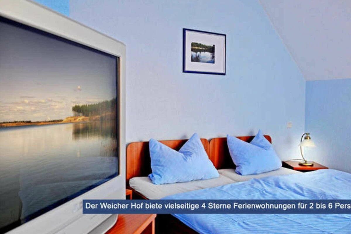 Die modernen Ferienwohnungen des Weichaer Hofs begrüssen Sie im Weissenberger Stadtteil Weicha. Sie wohnen nur 4 Minuten von der Autobahn A4 und 15 Minuten von Bautzen entfernt.Freuen Sie sich auf einen erholsamen Aufenthalt mit Selbstverpflegung in den 4-Sterne-Ferienwohnungen (von 2 bis 6 Personen) des Weichaer Hofs. Die Apartments verfügen alle über eine komplett ausgestattete Küche, Kabel-TV und kostenfreien Internetzugang über LAN. Die Endreinigung, sowie Handtücher und Bettwäsche sind im Übernachtungspreis enthalten. Das Frühstück und der Brötchenservice wiederum, werden gegen Aufpreis angeboten. Auf Wunsch ist - ebenfalls gegen Aufpreis - Halb- oder Vollpension (z.B. ein 3-Gänge-Menü) erhältlich. Haustiere sind auf Anfrage in der Ferienwohnung 4 willkommen. In den grösseren Apartments ist ein Kinderbett zum Teil bereits fester Bestandteil oder kann auf Anfrage bereitgestellt werden.Die Apartments befinden sich auf einem grossen Grundstück mit Kinderspielplatz, diversen Ruhemöbeln, einem Grillplatz und einem Steinbackofen. In der hofeigenen Reitschule werden zahlreiche Kurse angeboten. Bei schlechtem Wetter entspannen Sie in der Bibliothek oder in unserer hauseigenen Sauna.Der Weichaer Hof liegt direkt am Radweg Sorbische Impressionen sowie am Jakobsweg (zwischen Görlitz und dem spanischen Santiago de Compostela). Freuen Sie sich auf Spaziergänge durch die Naturlandschaft im nahe gelegenen Tal Gröditzer Skala und im historischen Naturpark Weichaer Anlagen. Durch die zentrale Lage mitten in der Oberlausitz bieten sich Ihnen in allen Himmelsrichtungen sehr schöne und abwechslungsreiche Ausflugsziele. Badespass ist im nördlich gelegenen Lausitzer Seenland und in den Freizeitbädern der Region garantiert. Das Oberlausitzer Bergland und das Zittauer Gebirge laden zum Wandern, Klettern und Erholen ein, während Städteurlauber mit der Europastadt Görlitz und ihrer berühmten Altstadt sowie mit den kulturellen Reizen von Bautzen und der nicht weit entfernten Barockstadt Dresden voll auf ihre Kosten kommen. Abenteuerlustige Urlauber mit Kindern wagen einen Ausflug in den nahe gelegenen Saurierpark. Zudem befindet sich der Hof in einer idealen Lage für Tagesausflüge in das von der UNESCO geschützte Biosphärenreservat Oberlausitz.