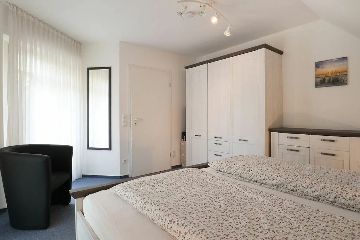 Diese tolle 4 -Zimmer Meerblick Maisonettenwohnung mit zwei Balkonen und zwei Bädern, befindet sich im 2.Obergeschoss des Hauses. Mit einer grosszügigen Wohnfläche von 90qm ist die Ferienwohnung für eine Belegung mit max. 6 Personen geeignet. Im modern möblierten Wohn-Essbereich mit Balkonzugang, erwartet Sie ein bequemes Sofa mit Ruhesessel, ein Esstisch sowie Fernseher, Musikanlage und gebührenfreies WLAN sind ebenfalls vorhanden. Ideal für die Eigenversorgung ist die integrierte, voll ausgestattete Wohnküche mit: Ceranfeldherd, Backofen, Mikrowelle, Dunstabzug, Kühlschrank mit integr. Frostfach, Geschirrspüler, Toaster, Kaffeemaschine, Wasserkocher usw. Ihre Mahlzeiten nehmen Sie am Esstisch zu sich, oder Sie geniessen den saisonal möblierten Balkon in nördliche Ausrichtung. Zudem befinden sich auf der unteren Wohnebene zwei separate Schlafzimmer. Das erste Schlafzimmer ist sehr geräumig und verfügt über ein Doppelbett, Kleiderschrank, Kommode, Sitzgelegenheit, Fernseher. Im zweiten Schlafzimmer erwartet Sie ein Doppelbett, Kleiderschrank, Schreibplatz. Auch ein Tageslichtbad mit Wanne, Dusche, Waschtisch, WC befindet sich auf dieser Ebene.