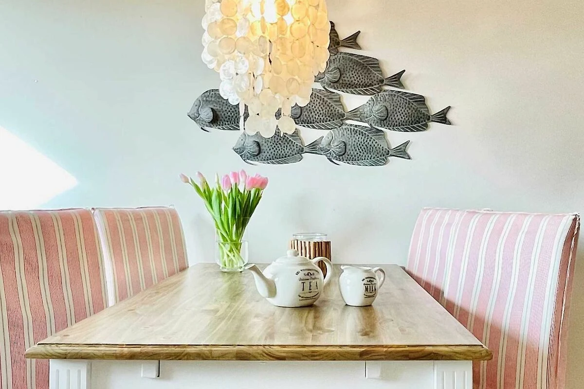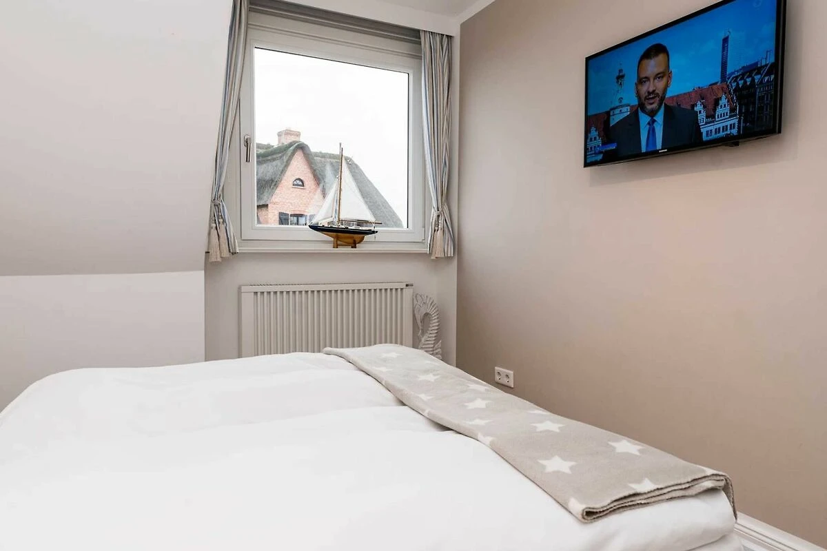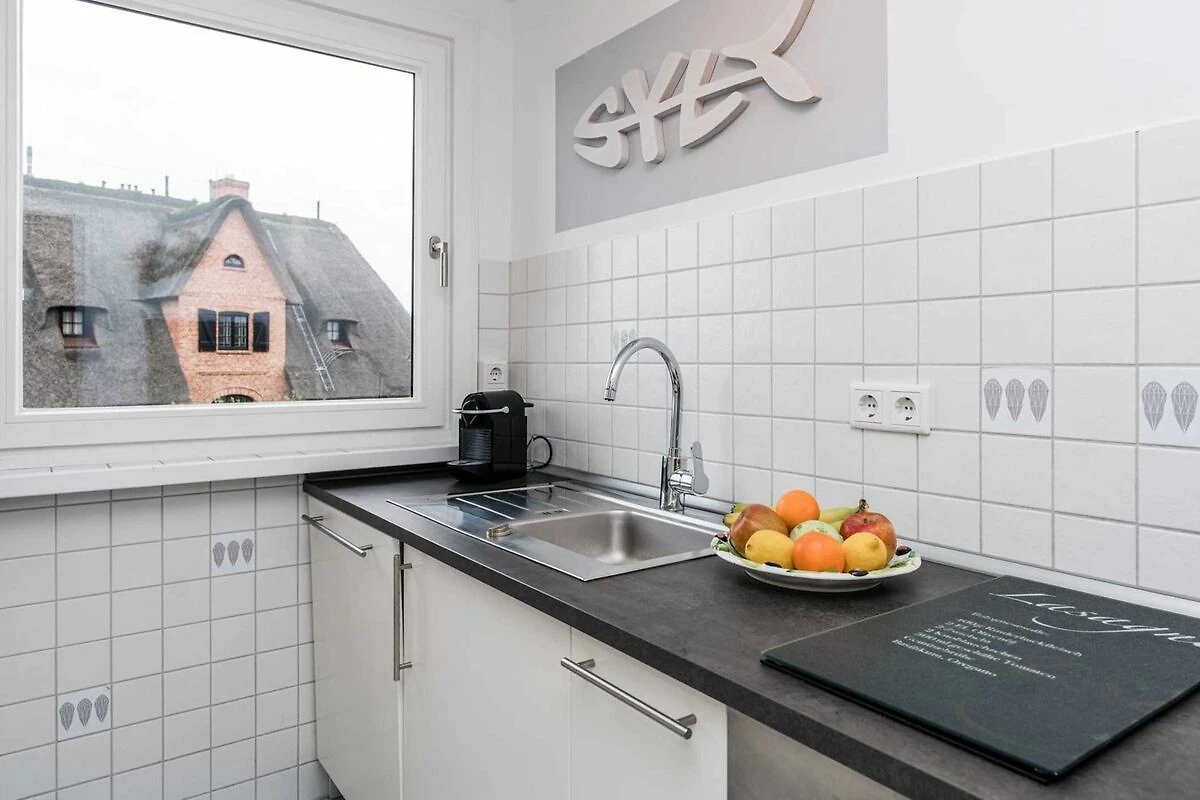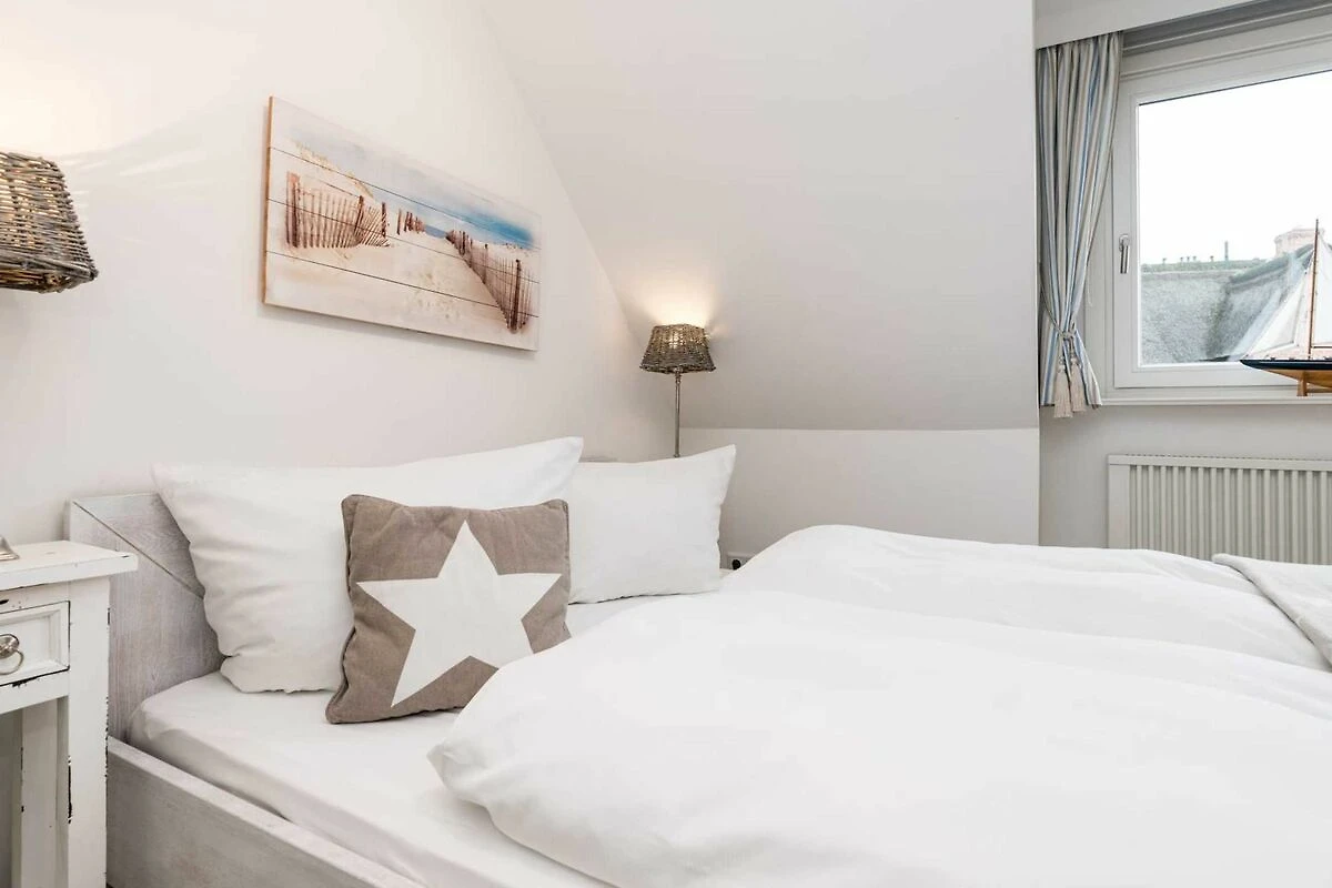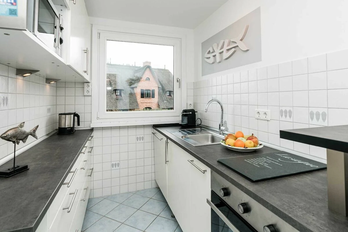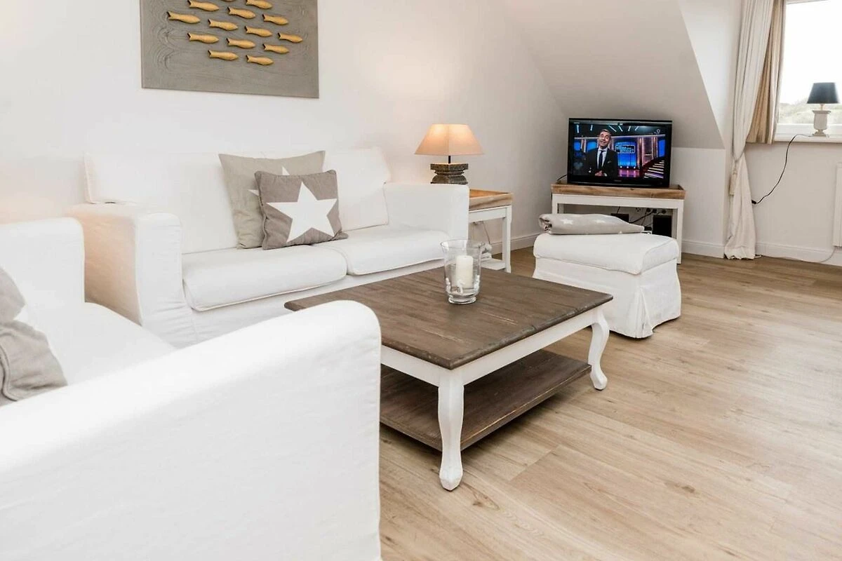 Das geräumige und helle Appartement liegt in Rantum auf Sylt im ersten Obergeschoss des Hauses und besticht durch die gemütliche Ausstattung und die herrliche Lage mit schönem Blick. Hier begrüsst Sie morgens die Sonne. Auf einer Ebene finden Sie ein geräumiges Wohnzimmer, eine voll ausgestattete separate Küche mit Nespressomaschine, zwei gemütliche Schlafzimmer sowie ein Wannenbad. Das grössere Schlafzimmer hat ein sehr bequemes Doppelbett (180x200). In dem kleineren Schlafraum befindet sich ein weiteres gemütliches Doppelbett (140x200). Selbstverständlich stehen Ihnen 3 SAT Flat-Screen TV's, kostenloser WLAN Zugang, ein Telefonanschluss in das deutsche Festnetz und ein PKW-Stellplatz zur Verfügung.