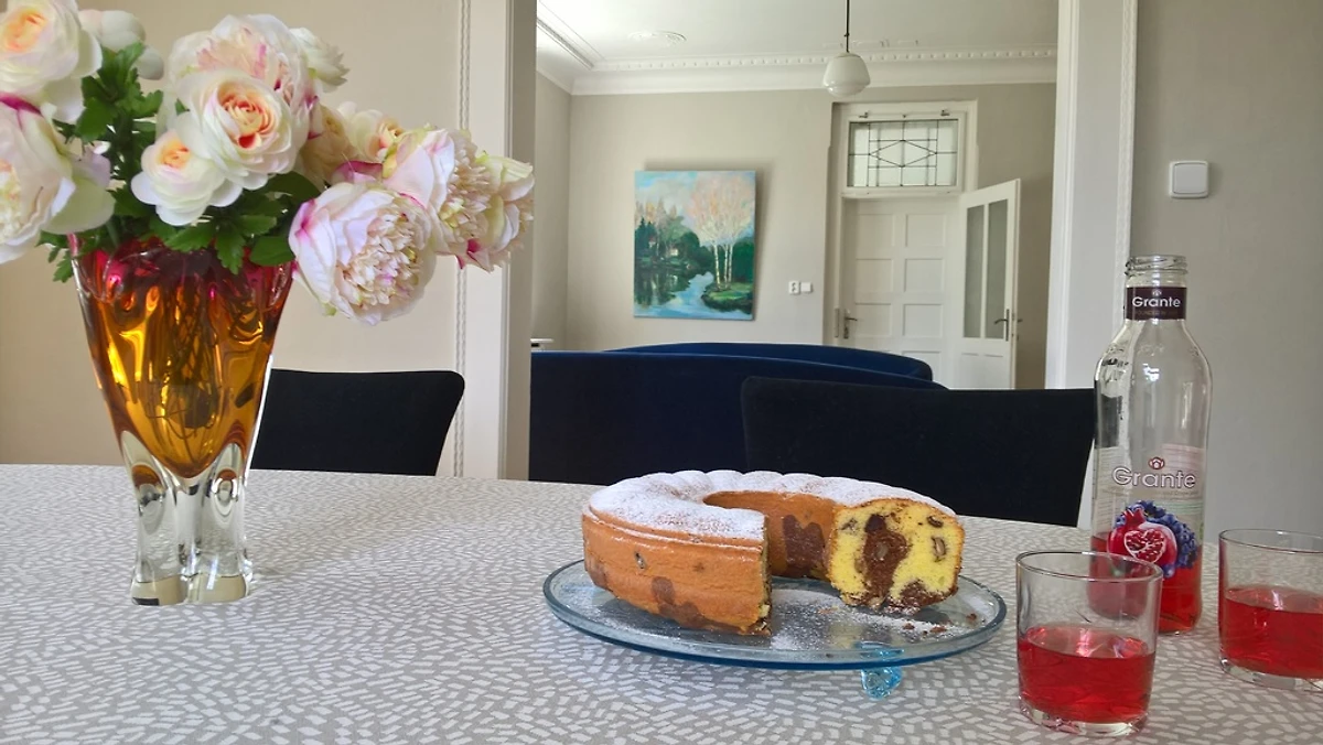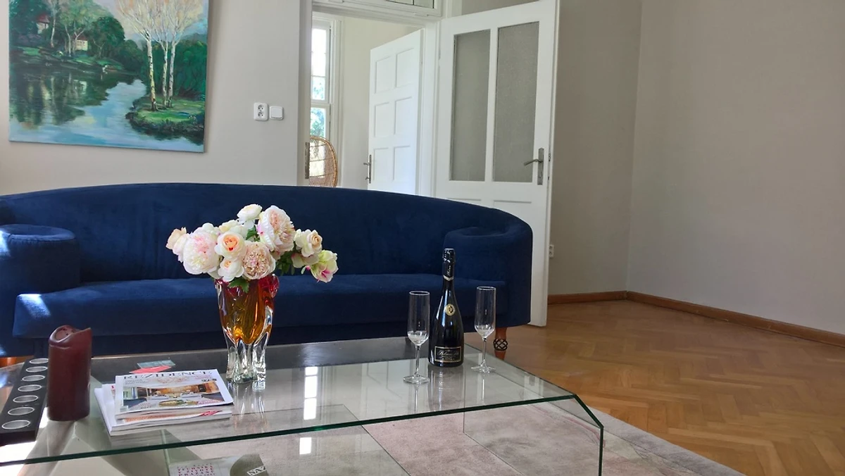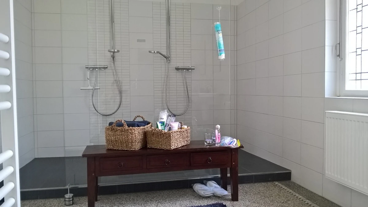 Die Villa liegt in einem großen Garten mit einem Bach und schönen Bäumen. Dieses Ferienhaus hat zwei Wohnetagen. Der erste Stock bietet eine Halle, ein großes Esszimmer, Wohnzimmer mit Wintergarten, eine voll ausgestattete Küche (Geschirrspüler, Backofen, Herd, Kühlschrank) mit einem Esstisch. Im Obergeschoss finden Sie drei Schlafzimmer, eines davon ein Suite-Typ Schlafzimmer (40 qm) und 2 normale Schlafzimmer. Das geräumige, moderne Badezimmer bietet eine ebenerdige Dusche für zwei Personen und zwei Waschbecken. Selbstverständlich stellen wir Ihnen Handtücher und Bettwäsche zur Verfügung.