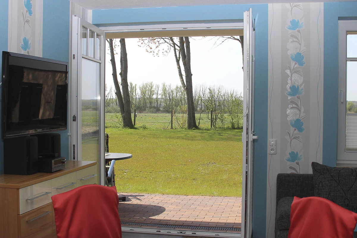 Diese wunderschön, modern eingerichtete 2 Zimmerwohnung mit Kamin und Fussbodenheizung und Blick auf die Conventer Niederung hat eine Terrasse mit anschliessender Wiese, wo Sie den Strandtag ruhig ausklingen lassen können. Das geräumige Wohnzimmer ist mit einer Schlafcouch (geeignet als Aufbettung für 2 weitere Gäste) und einem Fernseher und CD Spieler versehen. WLAN steht den Gästen kostenfrei zur Verfügung. Die voll ausgestattete Küchenzeile mit Spülmaschine schliesst sich direkt an.