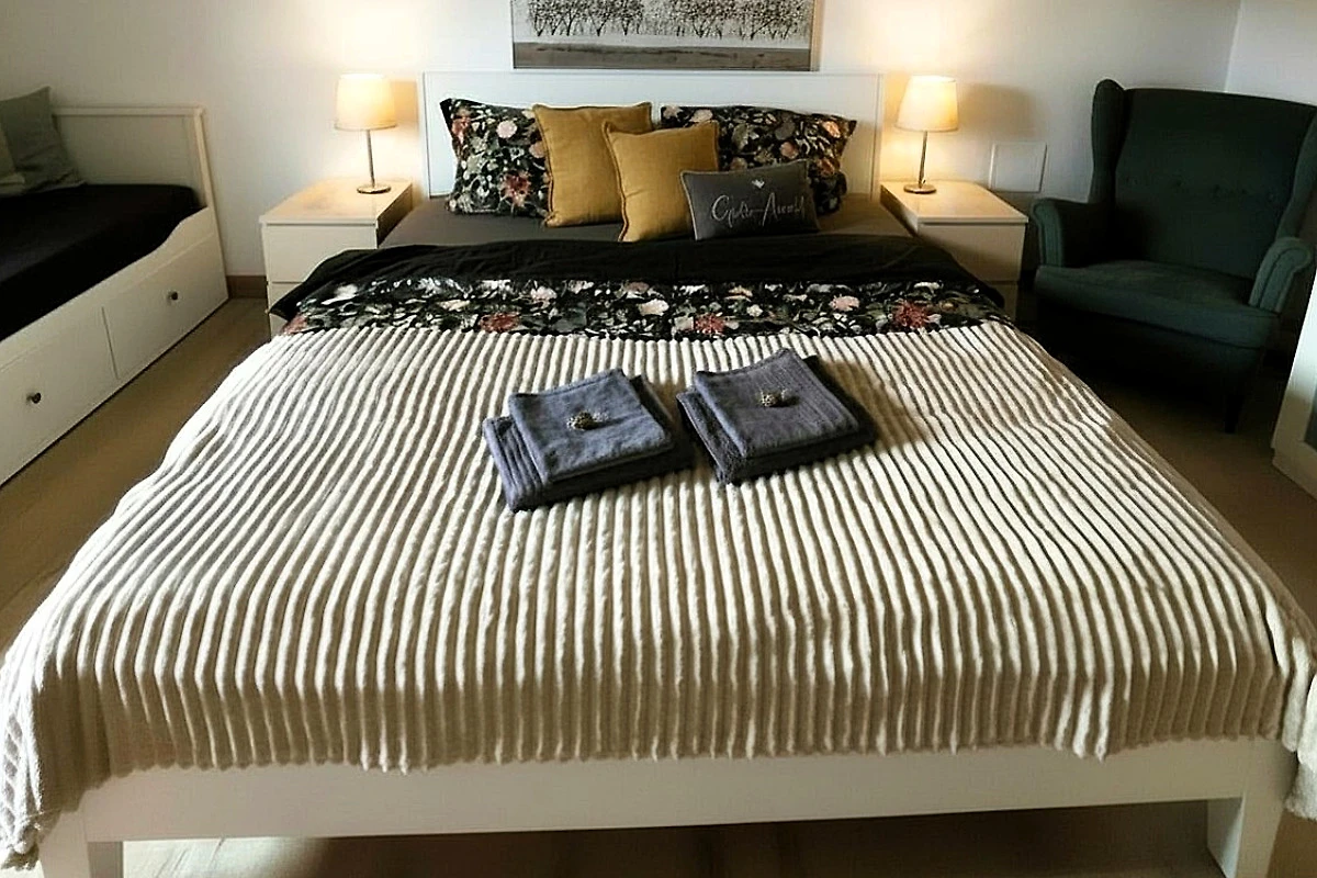 Natürlich haben ich auch an die vielen kleinen Dinge gedacht, die Ihren Aufenthalt so bequem machen: Senso neben der klassischen Kaffeemaschine, Backofen, Kühlschrank mit Gefrierfach, Geschirrspüler, Toaster, Heißluftfriteuse, Föhn und vieles mehr stehen bereit. Packen Sie also nur das Nötigste ein – ich sorge dafür, dass Sie nichts vermissen.