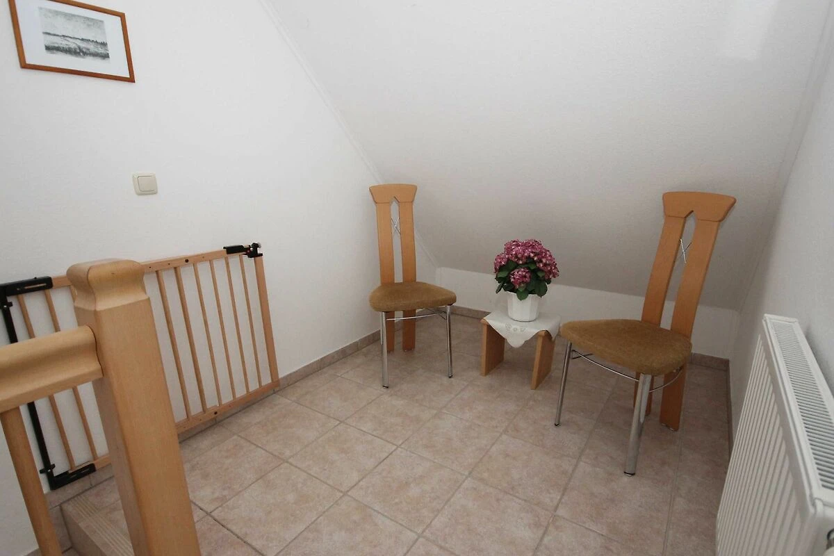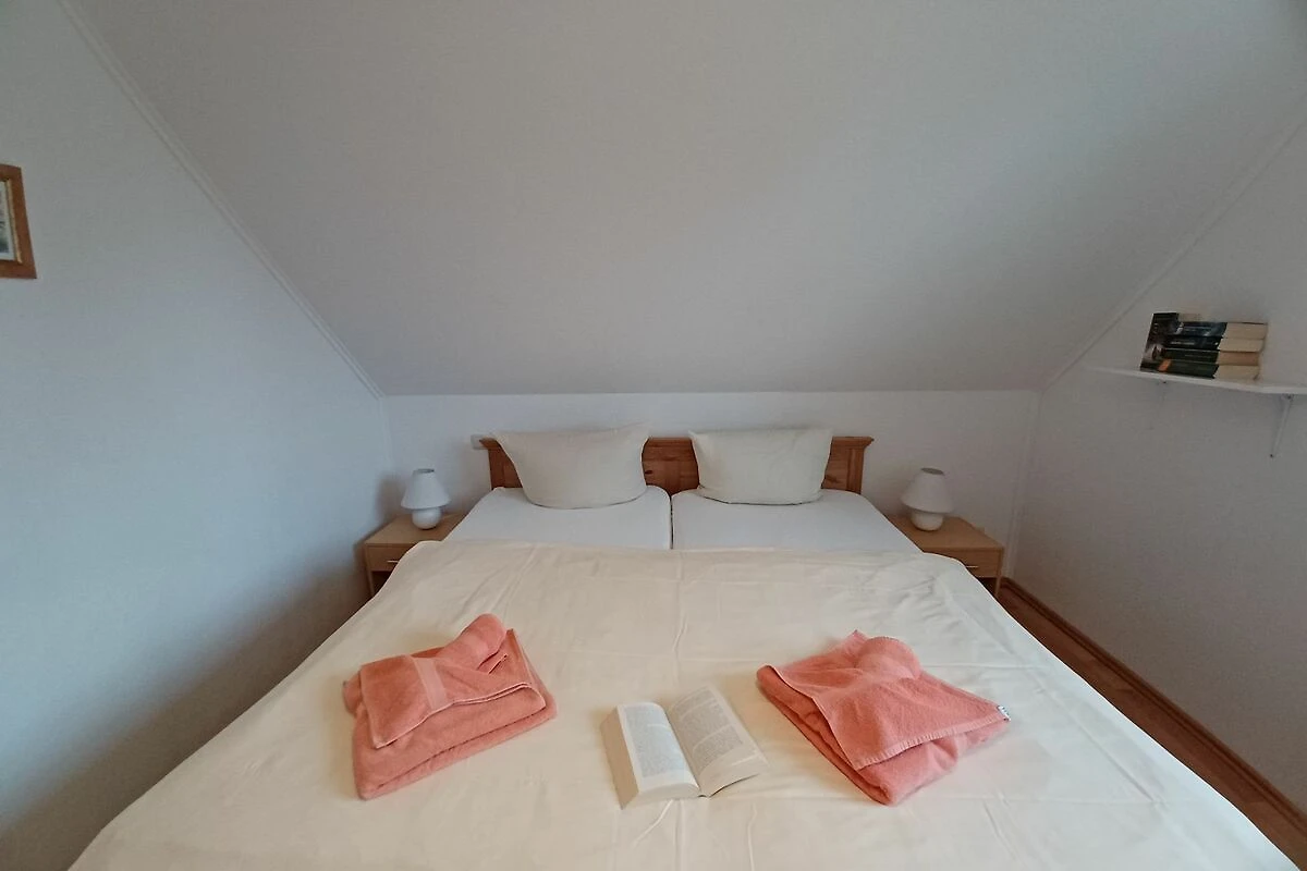 Das Ferienhaus am Meer ist eine Doppelhaushälfte mit 2 komfortablen Ferienwohnungen über 2 Etagen. Die Ferienwohnung Backbord ist im Erdgeschoss, ausgestattet mit einem grosszügigen Wohnraum inclusive einer bequemen Couch, SAT- TV und direktem Zugang zur Terrasse und dem Garten. Die offene Küchenzeile ist ausgestattet mit einer Mikrowelle und Geschirrspüler , mit Essplatz und im separaten Raum steht ein Gefrierwürfel zur Nutzung bereit. Das Gäste/WC befindet sich ebenfalls im Erdgeschoss. Im Obergeschoss stehen Ihnen 2 Schlafzimmer mit Doppelbett 1,80 x 2,00 m ( getrennte Matratzen ), sowie ein Bad mit Dusche/WC zur Verfügung. Die Ferienwohnung wird mit Handtüchern und Bettwäsche ausgestattet übergeben. Für unsere kleinen Gäste können kostenlos Kinderbett und Kinderhochstuhl genutzt werden.