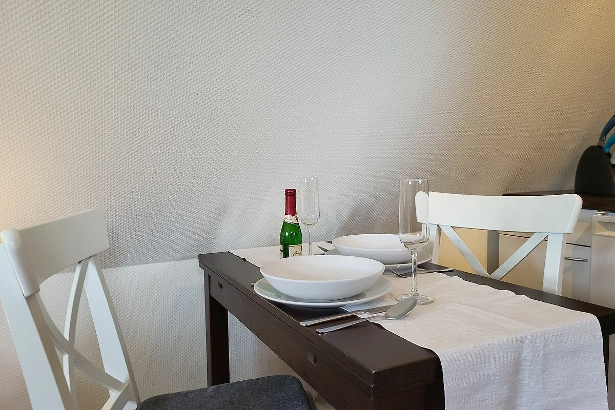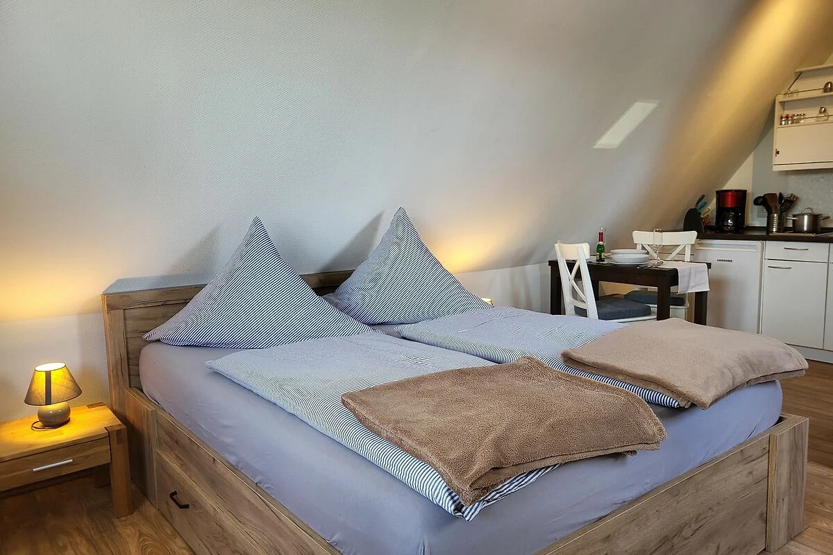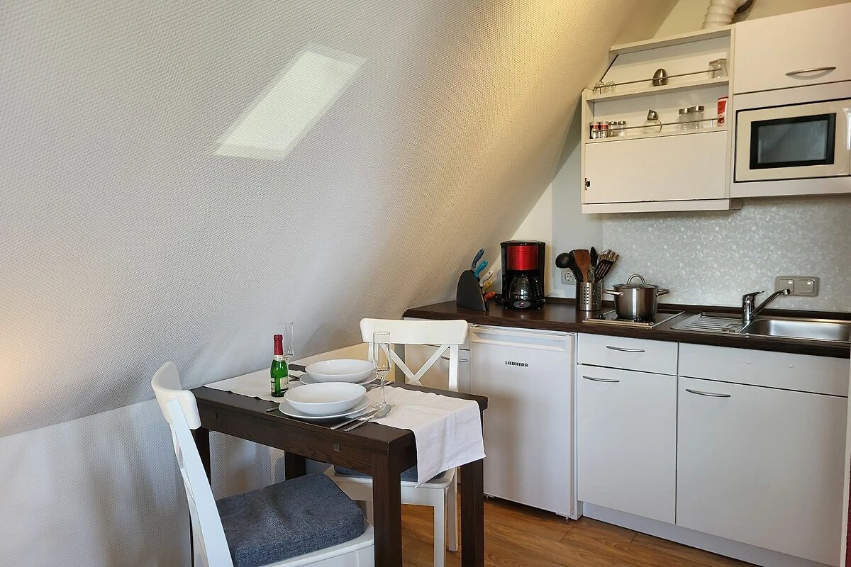 das kleine und gemütliche Appartement Bianca im Obergeschoss erreichen Sie über eine Aussentreppe, und liegt in der Nähe der Ostsee- Kurklinik. Die Terrasse befindet sich unten und ist mit einem Sitzplatz ausgestattet. Den feinsandigen Strand erreichen Sie in ca. 250 m. Ein Parkplatz zum Appartement befindet sich direkt auf dem Grundstück.Der Wohn- Schlafraum ist mit einem Doppelbett 1,80 x 2,00 m (getrennte Matratzen), einer kleinen Sitzgruppe und mit SAT- TV ausgestattet. Die kleine Küchenzeile mit Mikrowelle, bietet mit dem kleinen Essplatz Raum für 2 Personen.Das Bad ist ausgestattet mit einer Dusche. Das Appartement wird mit Bettwäsche übergeben, Handtücher können in der Zimmervermittlung für 7,00 € pro Person hinzugebucht werden (1 Badetuch, 1 Handtuch).
