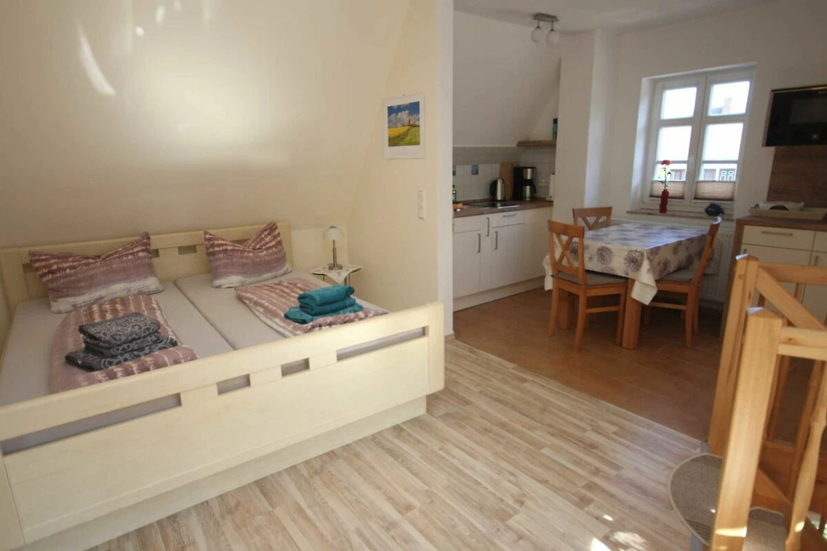 das kleine und mit viel liebe zum Detail eingerichtete Appartement unterm Rohrdach,liegt in der Neuen Strasse mit seinen alten Büdnereien. Das Appartement liegt in ruhiger und zentraler Lage im alten Ortskern. Im Aussenbereich liegt eine kleine Terrasse und lädt zum Beisammensein ein. Fussläufig in ca. 15 Gehminuten erreicht man den feinsandigen Ostseestrand und ca. in 5 min den Wustrower Hafen. Für Ihren Urlaub steht Ihnen ein Wohn- Schlafraum mit einer kleinen gemütlichen Sitzecke und SAT-TV und einem kostenlosen WLAN-Zugang, sowie einem Doppelbett 1,80 x 2,00 cm (mit getrennten Matratzen) bereit. In der kleinen Küchenzeile mit 2- Platten Cerankochfeld , Mikrowelle und dem Essplatz, finden Sie alle notwendigen Küchenutensilien.Das Badezimmer wurde mit einer Dusche ausgestattet.Die Wohnung wird mit Bettwäsche und Handtücher (jeweils pro Person 1 Badehandtuch und ein kleines Handtuch) übergeben.Das Rauchen ist nicht gestattet.Ein Parkplatz für Ihr Auto befindet sich direkt auf dem Grundstück. Zur Ausstattung gehören auch Fliegengitter.