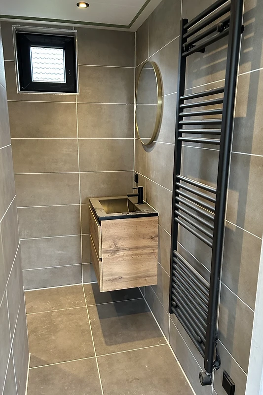 Bad mit Dusche, Waschbecken und seperat Toilette.