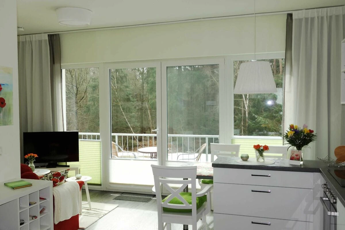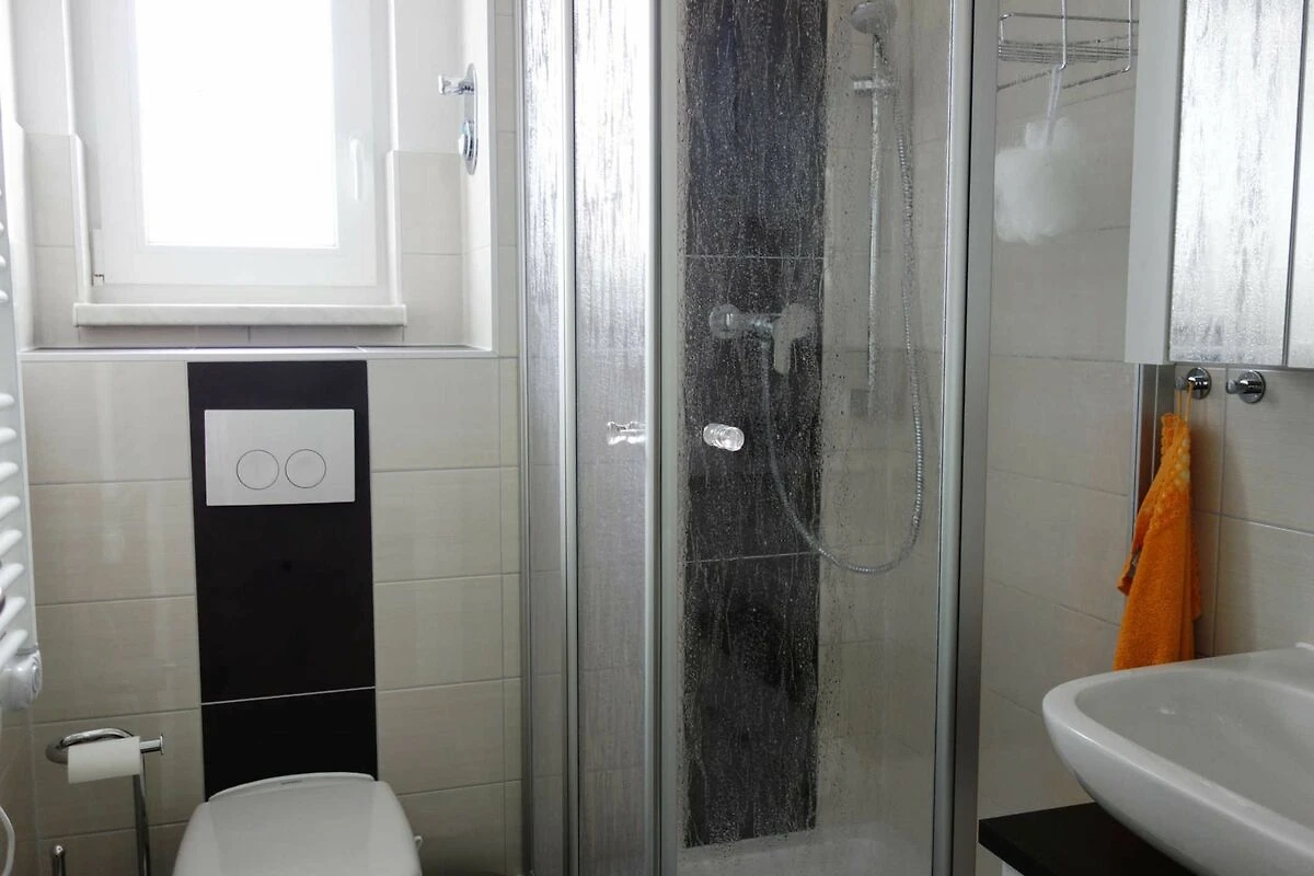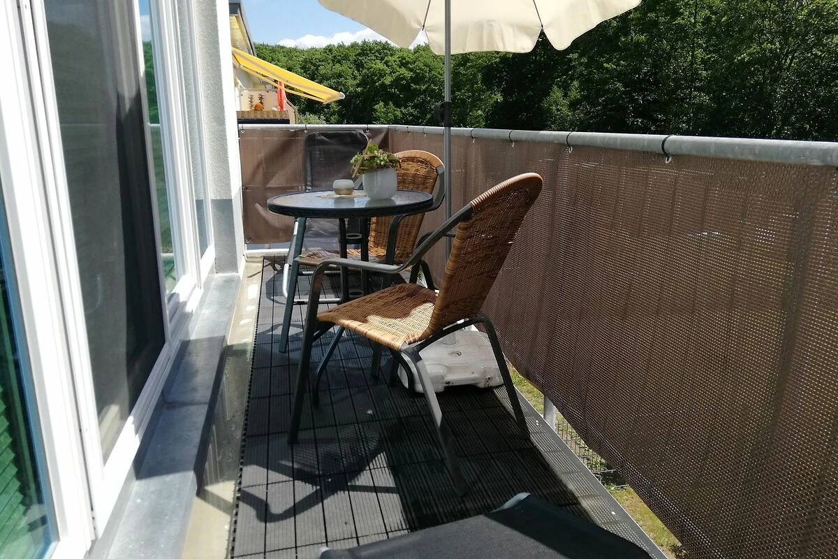 Es erwartet Sie eine 38 m² grosse 2-Raum-Wohnung mit integrierter Küche im 1. Obergeschoss mit einem 5 m langen Balkon. Geniessen Sie dort die Morgensonne und den Tagesausklang vor unverbaubarem Waldblick. Das Schlafzimmer verfügt über ein 160 cm breites Doppelbett und einen Kleiderschrank. Im Bad finden Sie Dusche und WC vor. Zur Wohnung gehören ein PKW-Stellplatz sowie ein kleiner Schuppen.