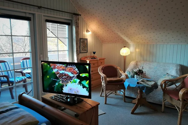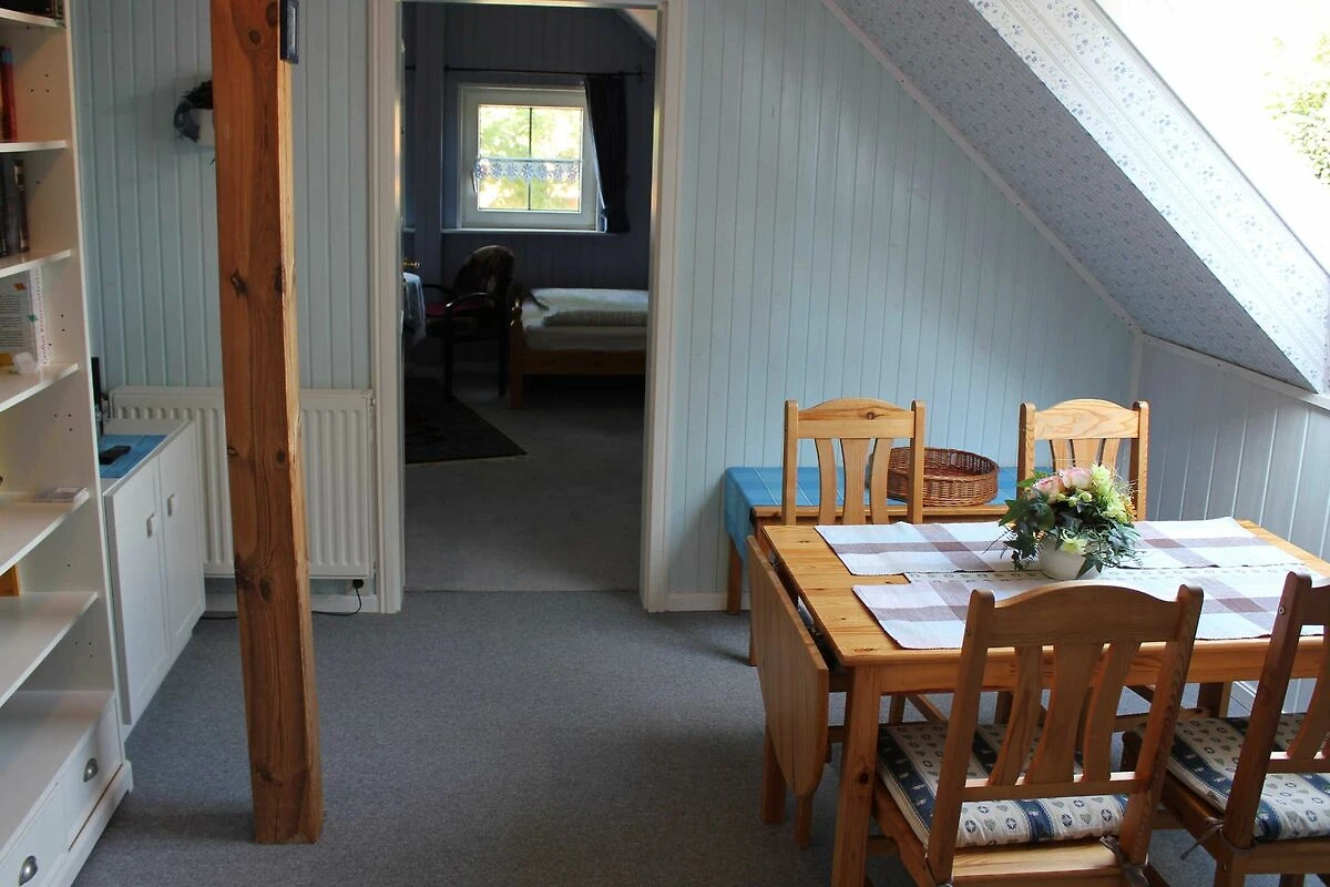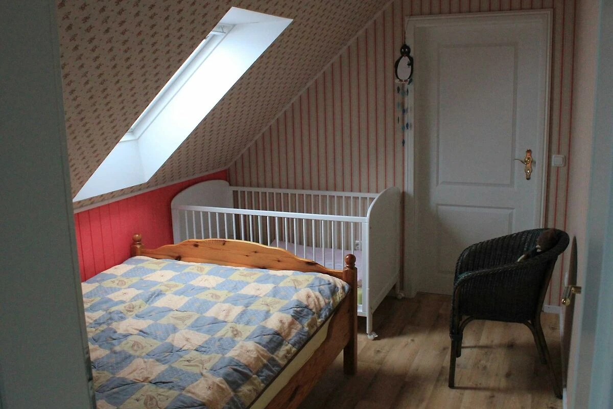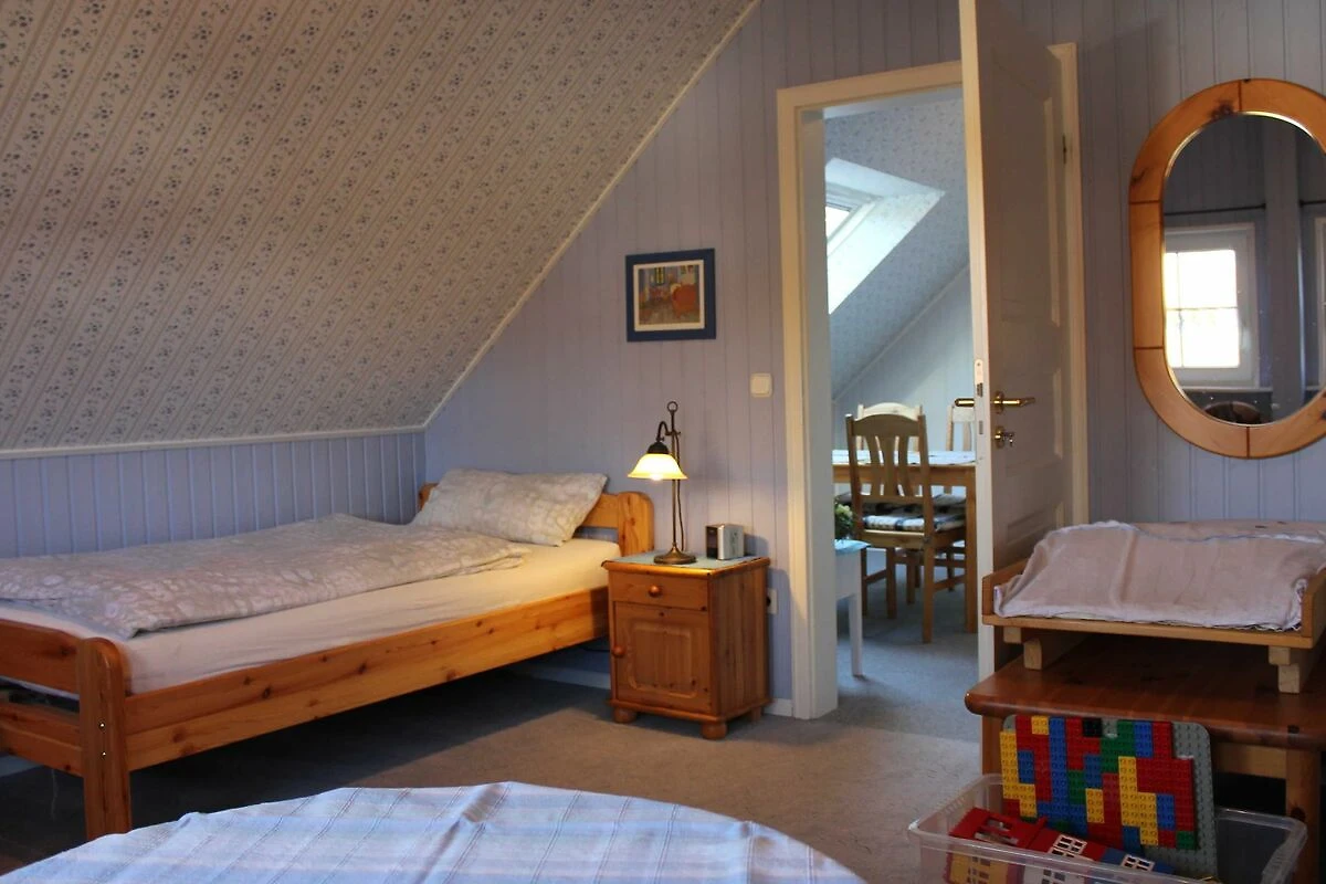 Es ist eine liebevoll gestaltete 3 Sterne Oberwohnung in familiärer Atmosphäre. Grosse Räume mit schönem Ambient Die 80 qm grosse Wohnung besteht aus vier Zimmern, Küche und Bad mit hochwertiger Ausstattung und bietet Platz für 1 bis 5 Personen, zusätzlich 1 Kinderbett. Haupt-Schlaffzimmer mit Doppelbett 2x2m.