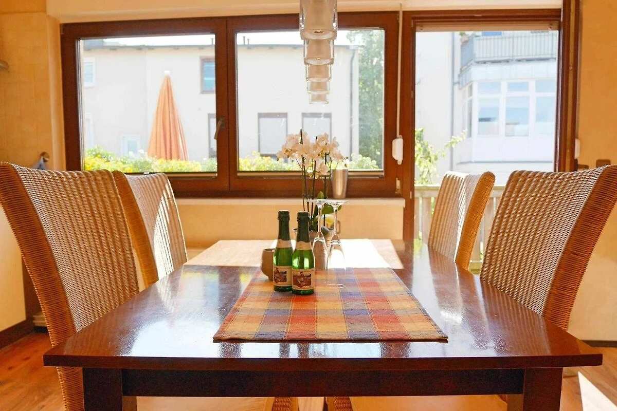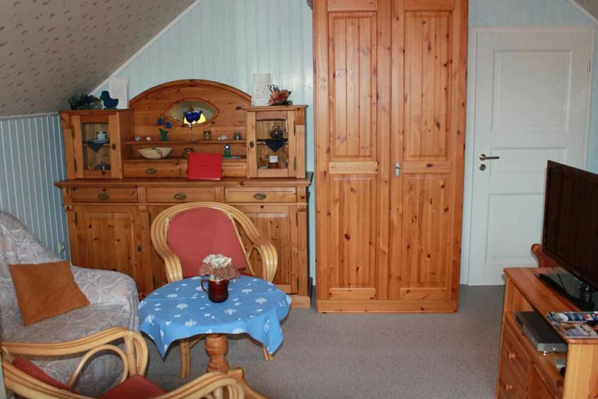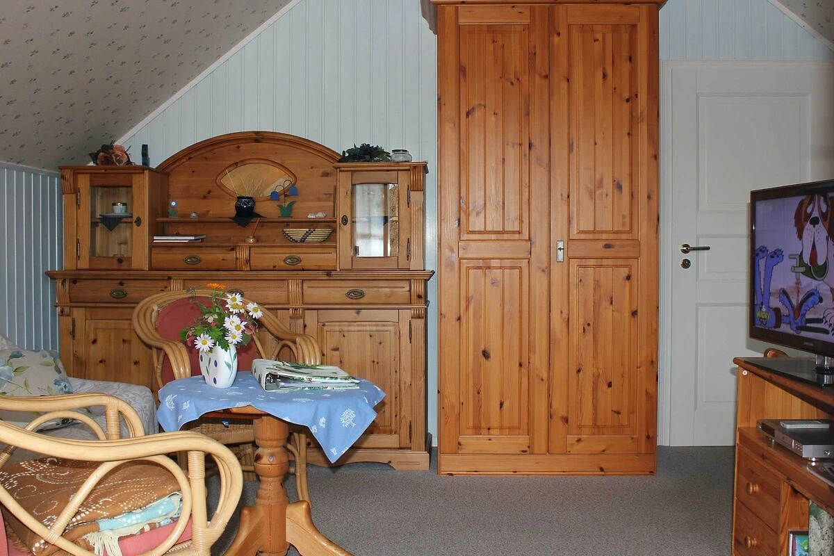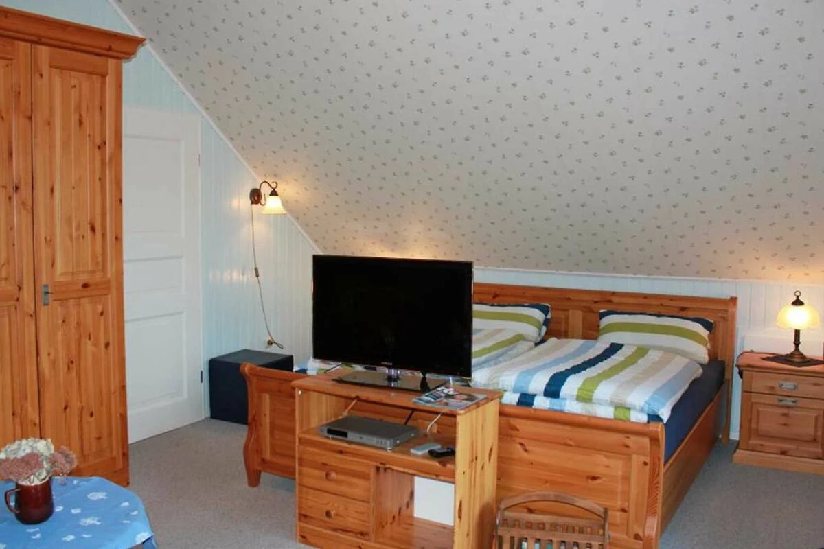 Es ist eine liebevoll gestaltete 3 Sterne Oberwohnung in familiärer Atmosphäre. Grosse Räume mit schönem Ambient Die 80 qm grosse Wohnung besteht aus vier Zimmern, Küche und Bad mit hochwertiger Ausstattung und bietet Platz für 1 bis 5 Personen, zusätzlich 1 Kinderbett. Haupt-Schlaffzimmer mit Doppelbett 2x2m.
