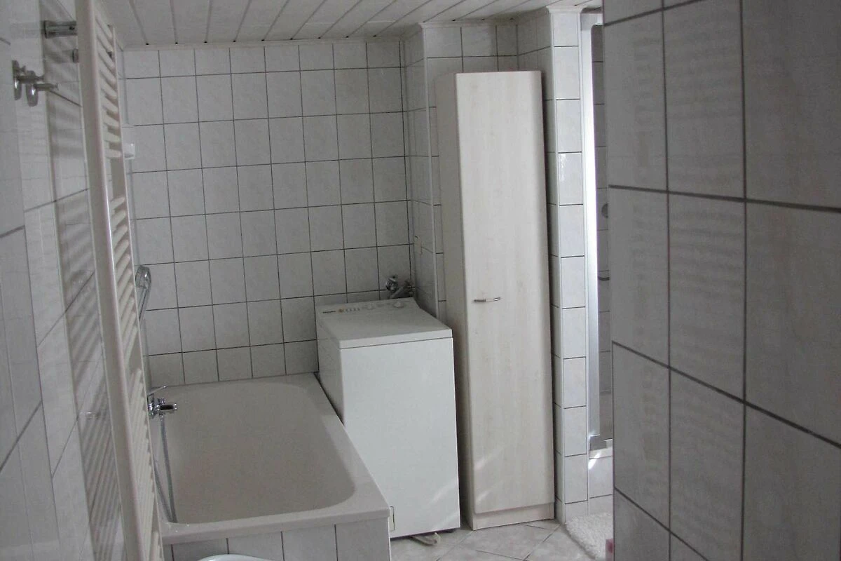 Das Badezimmer verfügt neben Waschbecken und WC auch über Badewanne und Dusche. Ausserdem können Sie die dort befindliche Waschmaschine und den elektrischen Wäschetrockner im Schlafzimmer gern mitbenutzen.