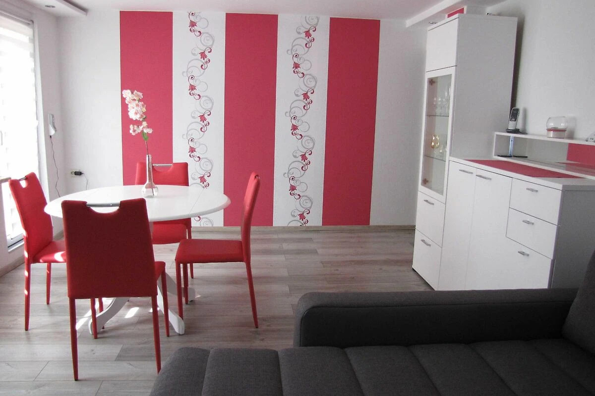 Das Wohnzimmer ist sehr geräumig und verfügt über eine Sitzgruppe und eine chillige Couch-Landschaft zum Entspannen (und nach Umwandlung in eine Schlafcouch auch zum Übernachten). Grossbild-TV mit BluRay-Player und Sat-TV steht Ihnen auch zur Verfügung. Im Wohnzimmer ist Laminat als Fussboden verlegt.