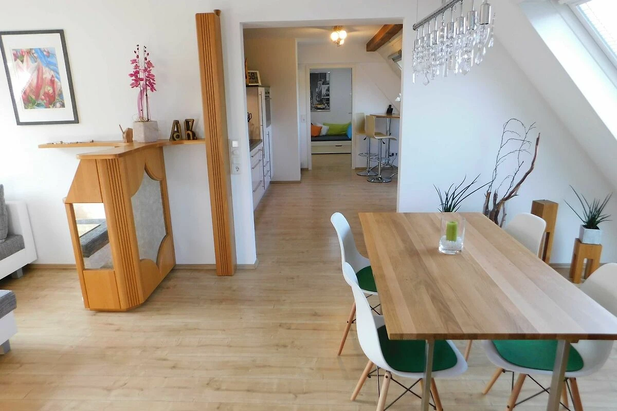 Die Ferienwohnung befindet sich im Dachgeschoss eines Zweifamilienhauses. Die Wohnfläche beträgt ca. 79 qm zuzüglich eines ca. 8 qm grossen Balkons.