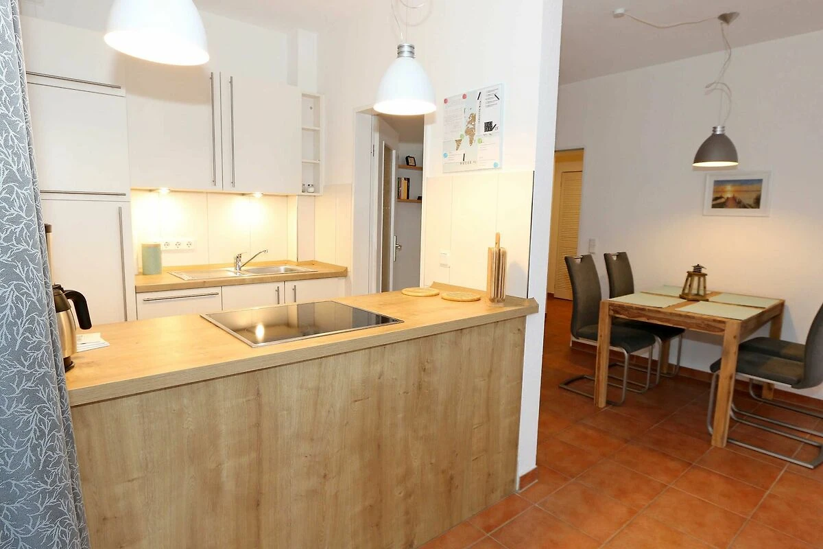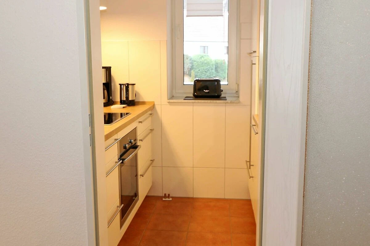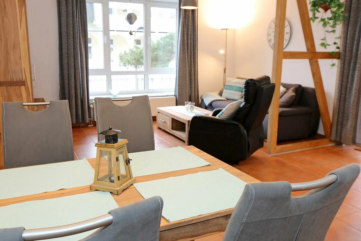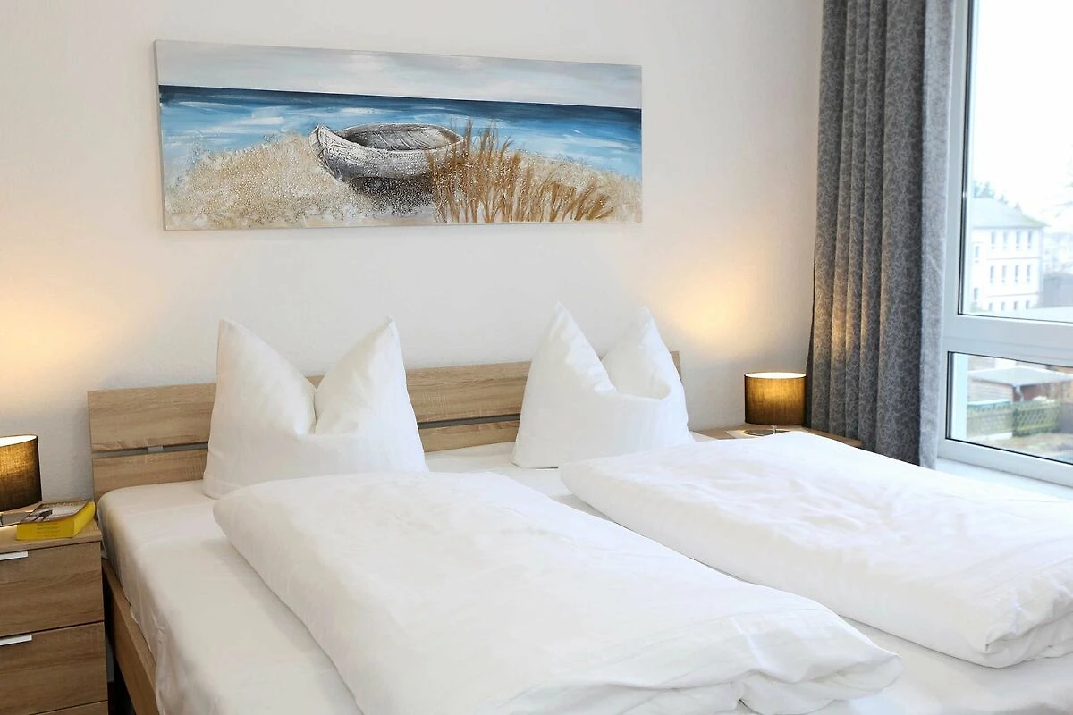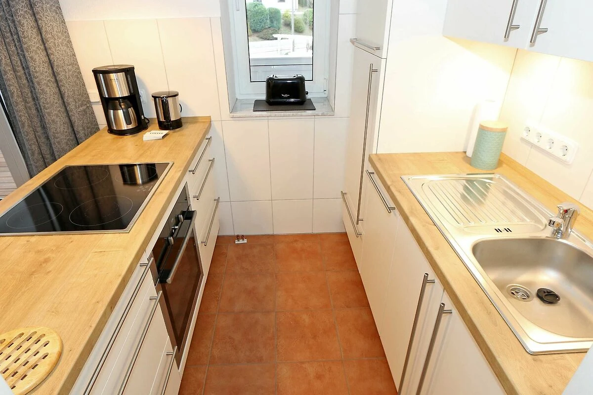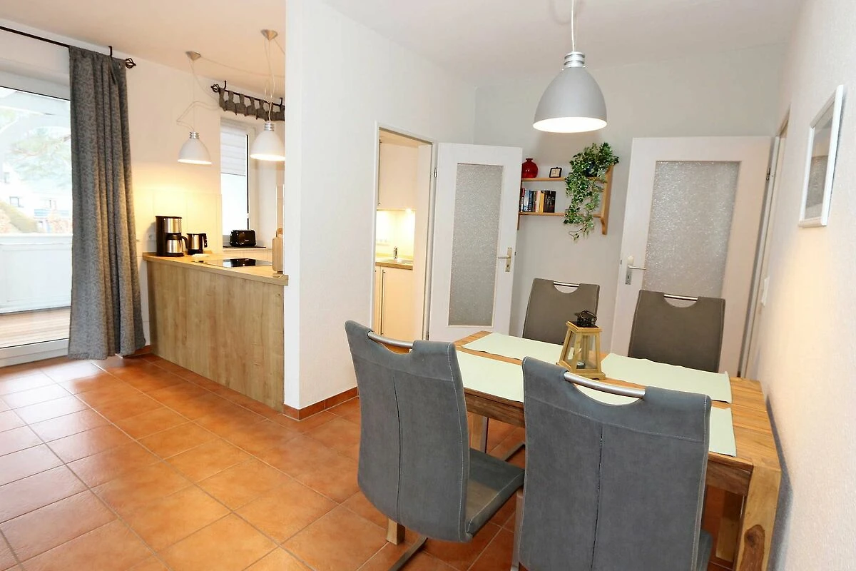 Die ausgestattete 2-Raum-Nichtraucher-Wohnung im 1. OG des Haus Holstein liegt am erweiterten Kurpark, direkt am Friedensberg mit hervorragender Wohnqualität und verfügt über ca. 63 qm Wohnfläche. Der geräumige Flur ist mit einer Garderobe sowie einem integrierten Abstellraum ausgestattet. Der 13 qm grosse und überdachte Balkon (Süden) mit Komfort-Bestuhlung und Sonnenliege ist vom Wohnbereich aus begehbar. Die Wohnung ist für 2 bis max. 4 Erwachsene ausgestattet und besteht aus einem Wohnbereich mit einer Couch (Aufbettung für 3./4. Person, 1,50 m x 2,00 m), massivem Couchtisch, einem Funktions-Sessel, einer Stehlampe sowie einer Vitrine. Der technische Bereich wird durch einen LED-TV, einen DVD-Player, einer Mini-Stereo-Anlage mit Bluetooth und USB-Anschluss sowie Internet (WLAN) abgerundet. Der Internetzugang (WLAN) ist für Sie inklusive. Die grosszügige Essecke umfasst einen massiven Vollholz-Tisch und vier dazugehörige Stühle. Die angrenzende und offene Küchenzeile bietet Ihnen einen Kühlschrank mit Gefrierfach, einen Backofen mit 4 Zonen Induktionskochfeld, einen Geschirrspüler, einer Mikrowelle, einer Kaffeemaschine, einen Toaster, einen Eierkocher, einen Handmixer, einen Wasserkocher sowie viele kleine Küchenutensilien. Im Schlafzimmer befindet sich ein Doppelbett (1,80 m x 2,00 m) mit einer Komforthöhe über 60 cm, Kaltschaum-Wendematratzen H2/H3, zwei Nachttischablagen und einen grossen Kleiderschrank. Ein grosser Ganzkörperspiegel rundet den Raum ab. Das innenliegende Bad ist mit einem Waschplatz mit beleuchtetem Spiegel, einer Dusche mit flachem Einstieg, Fön, WC, Handtuchhalter sowie einer Waschmaschine versehen. Im Abstellraum finden Sie kleine Helfer wie einen Staubsauger, ein Bügeleisen mit Bügelbrett und einen Wäscheständer für den Balkon. Alle Räumlichkeiten sind in der Wohnung gefliest und haben jeweils ein Insektenschutzgitter. Haustiere sind nicht erlaubt. Ein überdachter PKW-Stellplatz Nr. 12 (max. 2 m Höhe) befindet sich direkt unterm Haus. Im Gemeinschaftskeller stehen Ihnen eine Münzwaschmaschine und ein Münztrockner zur Verfügung. Abstellmöglichkeiten für Fahrräder sind gegeben. Die Erstausstattung eines Wäschepaketes (komplette Bettwäsche, 1 Duschhandtuch, 1 kleines Handtuch) können Sie bis 14 Tage vor Anreise gegen einen Aufpreis dazu buchen oder durch eigene ergänzen. Ab 2 gebuchten Paketen erhalten Sie einmalig 1 Geschirrhandtuch und 1 Duschvorleger hinzu.